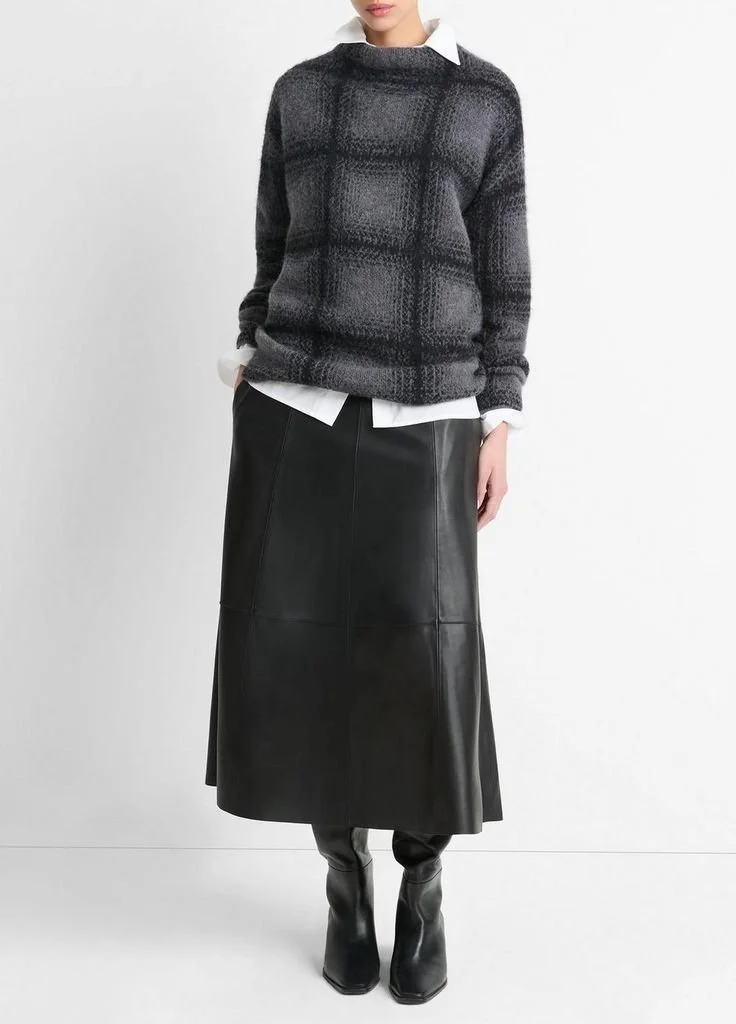 Remember to be thoughtful about what silouettes flatter your shape AND where you gain and loose weight. Then, opt for a stretchy choice that will fit as your weight goes up and down. I love this choice from Marcella NYC (another amazing resource for clothing). A-line skirts are super flattering for most body types and this asymmetrical neckline draws the eye up. Plus the waist ruching is flattering for nearly every body type (except the Diamond shape).