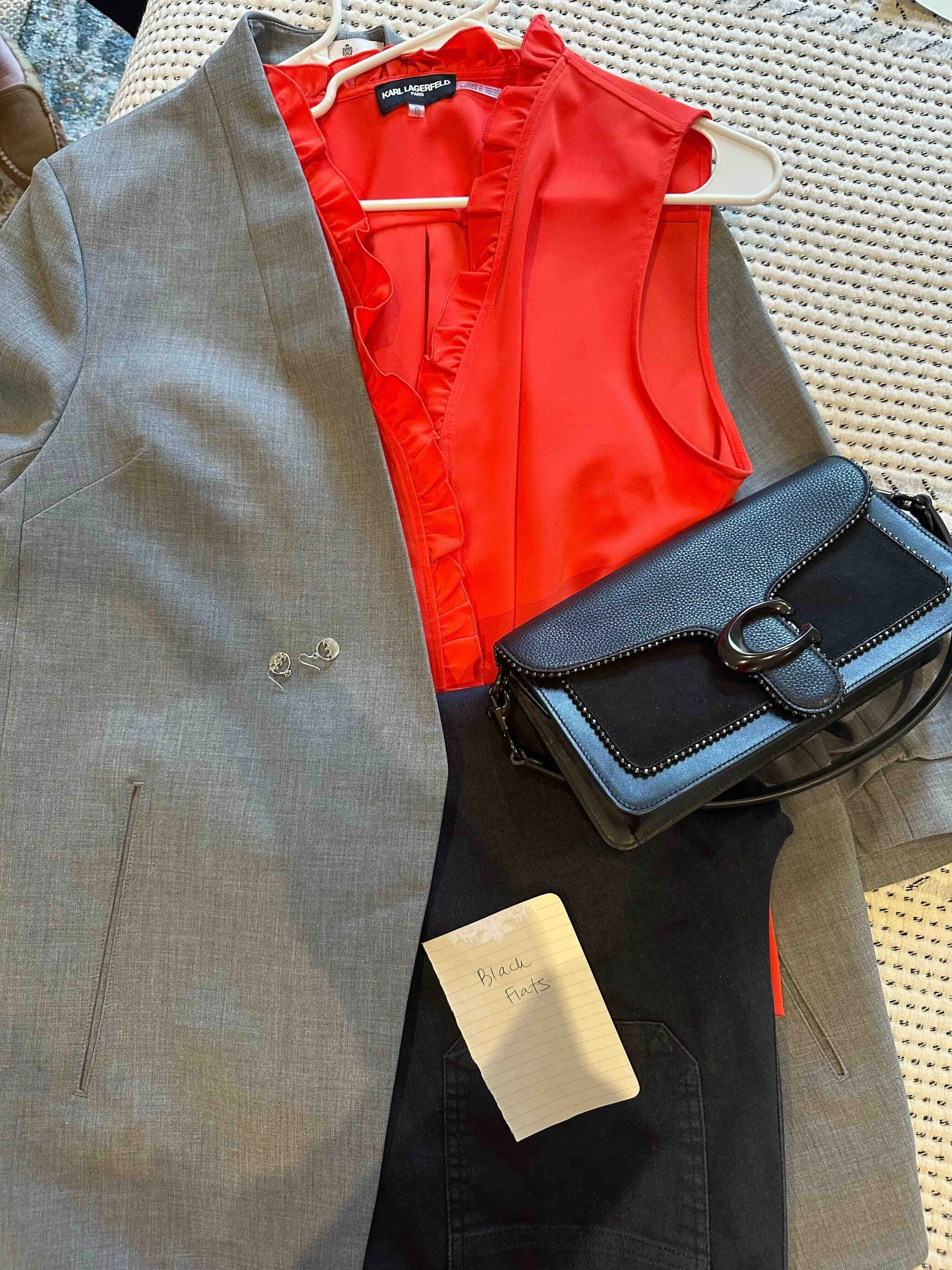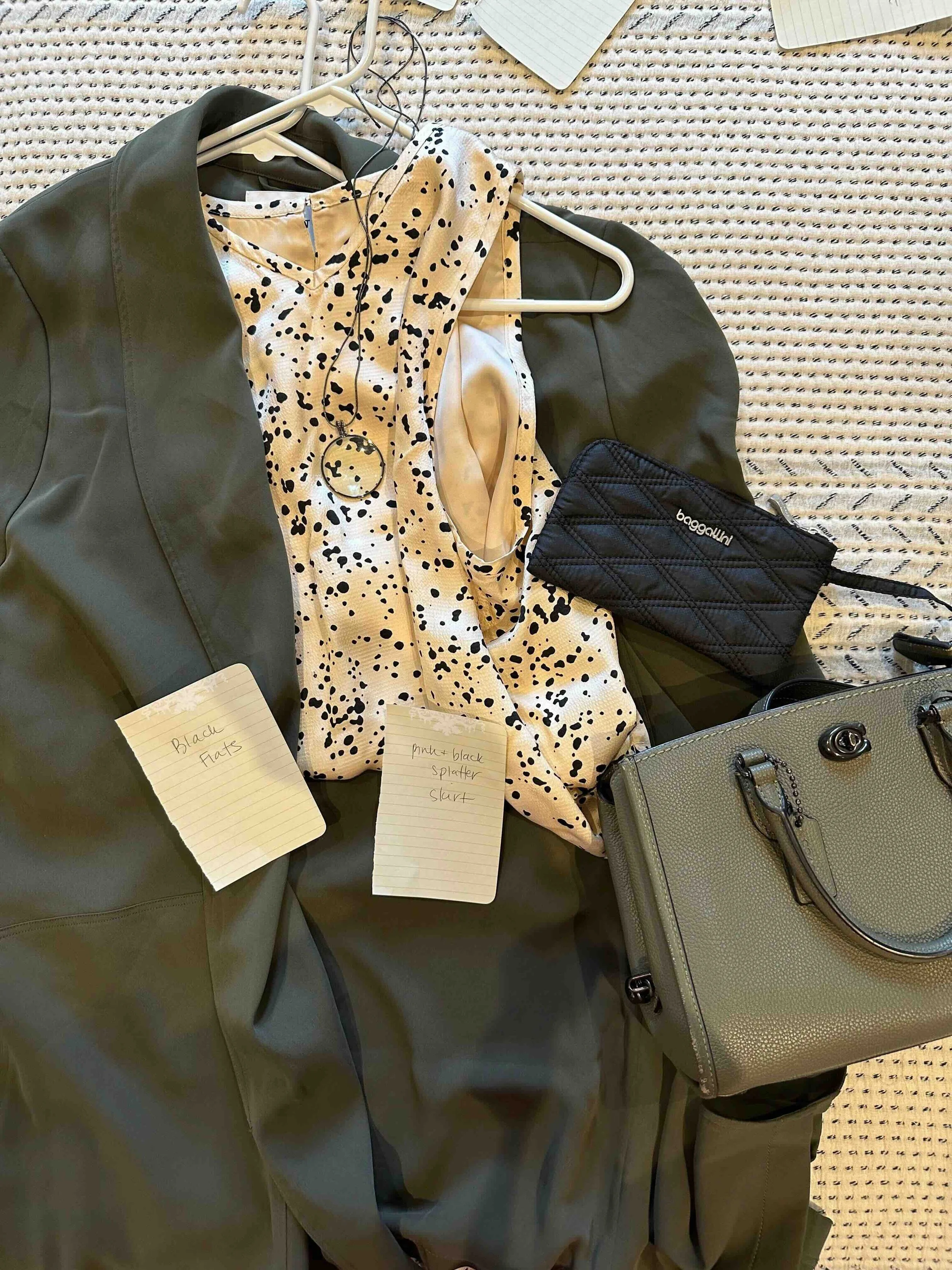 Heads up! These photos aren’t perfect. That’s because our focus is creating as many outfits as possible rather than having perfect photos. Fun fact: each outfit session occurs in the client’s bedroom, so that also impacts the final images. The takeaway here is progress not perfection, my dear. Create useful tools and don’t get hung up on unrealistic expectations. Have fun and get inspired!