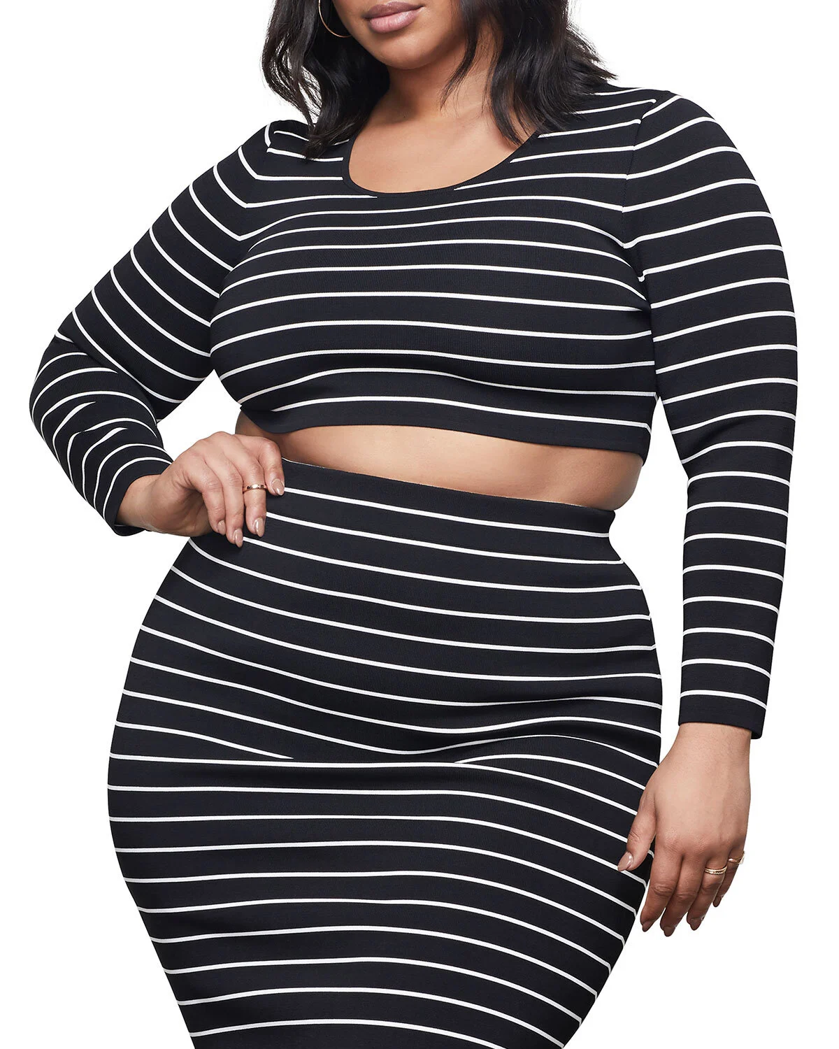 Good AmericanLong-Sleeve Striped Crop Top . Neimans. Was: $168. 40% off: Now: $100.80.