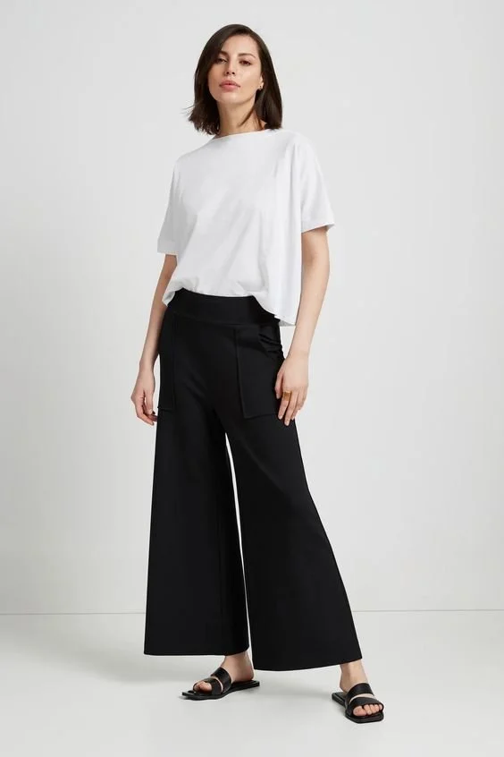 Claremont Pants. Available in two colors. Marcella NYC. $128. European Ponte, also known as Punto di Roma (60% Viscose, 30% Polyamide, 10% Lycra). Female founder. Ethically made.