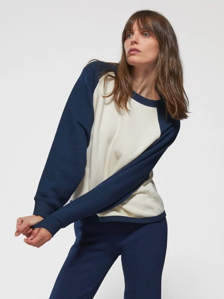 Brie Sweatshirt. Available in multiple colors. Marcella NYC. $108. Midweight European French Terry (95% Cotton / 5% Lycra). Machine wash or hand wash in cold water, and lay flat to dry. Do not tumble dry. Do not bleach. Iron on low heat. Designed in NYC. Handcrafted in Europe. Our production team enjoys a living wage, a 40-hour work week with paid overtime, free health insurance and 20 days annual paid vacation.