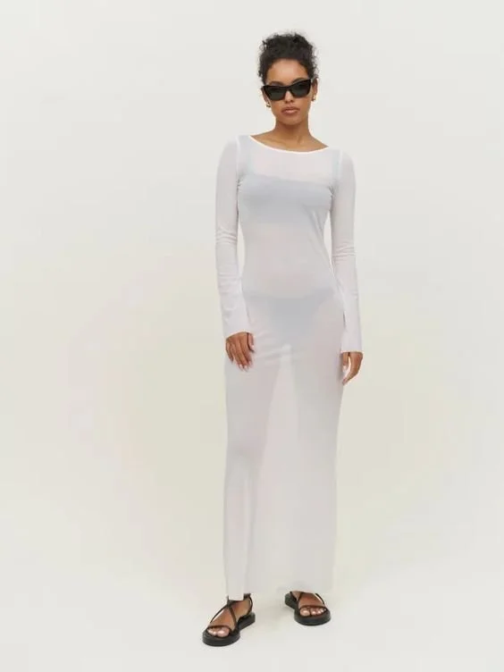 A sheer long dress is another great way to keep things sexy. Layer over any of the underthings on this list. This is a show stopper, for sure. And, it’s sustainable:)