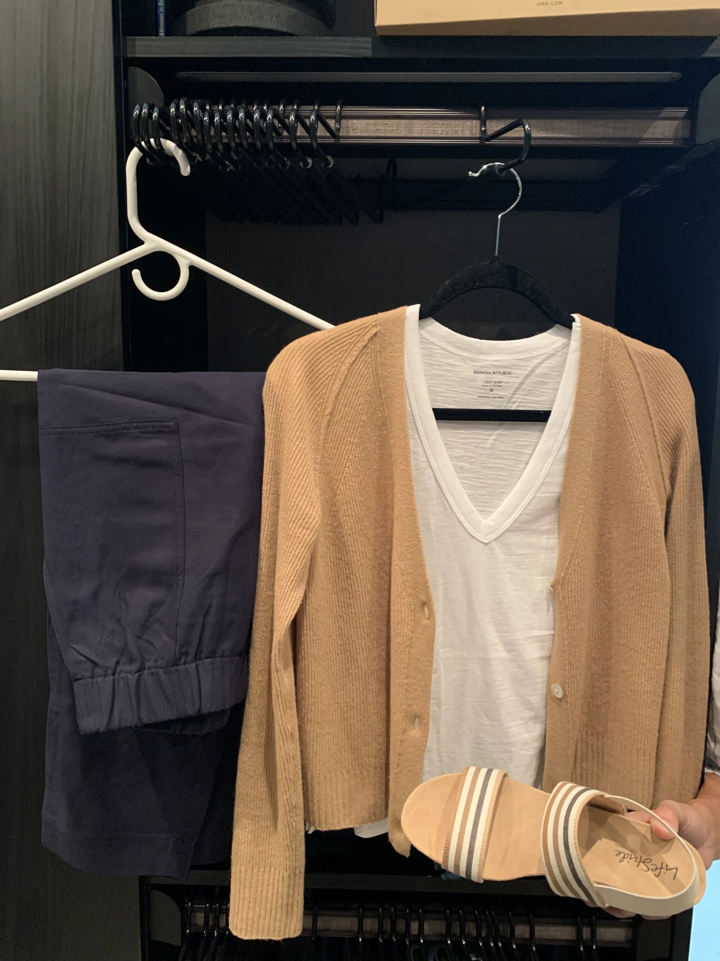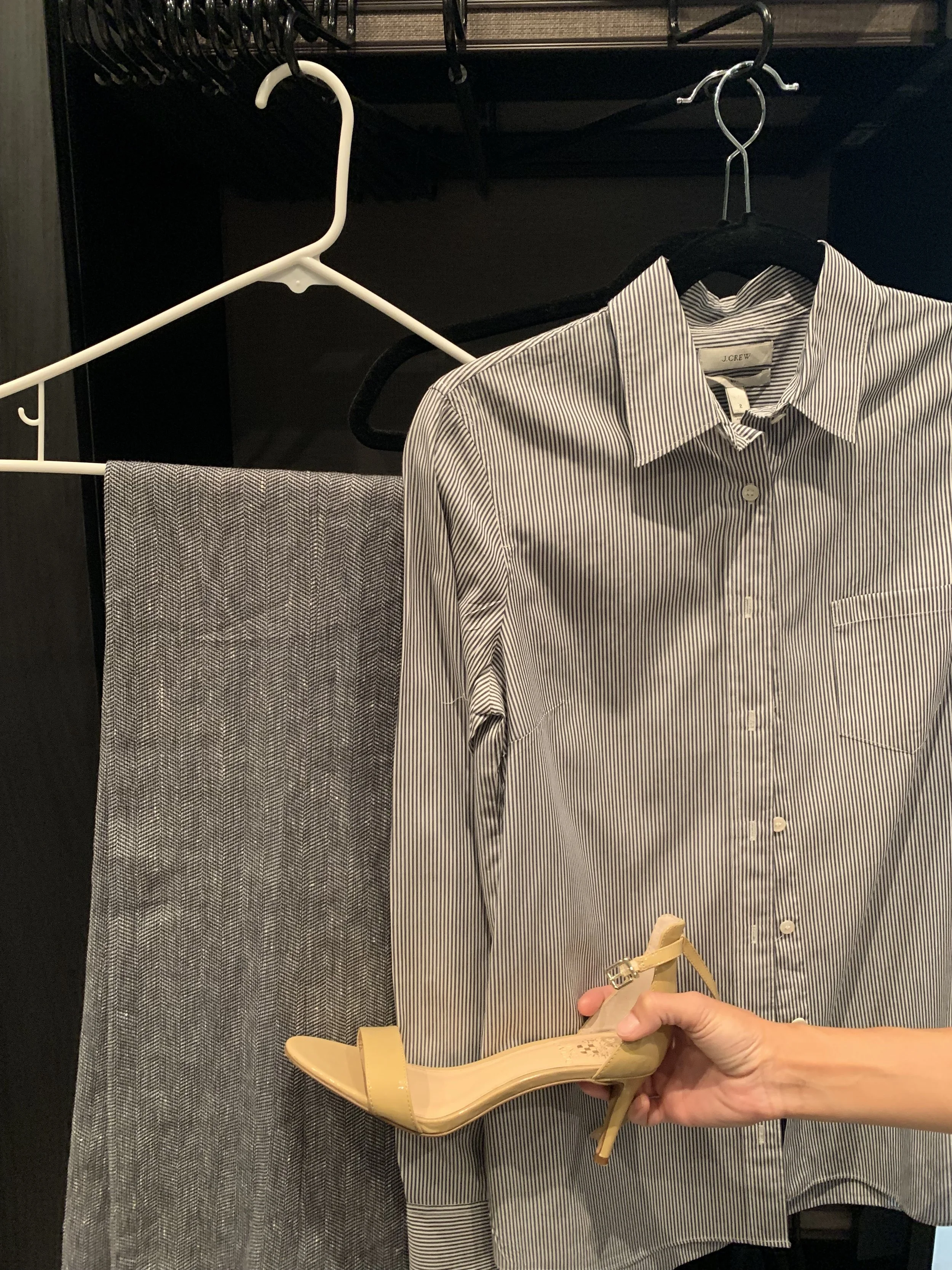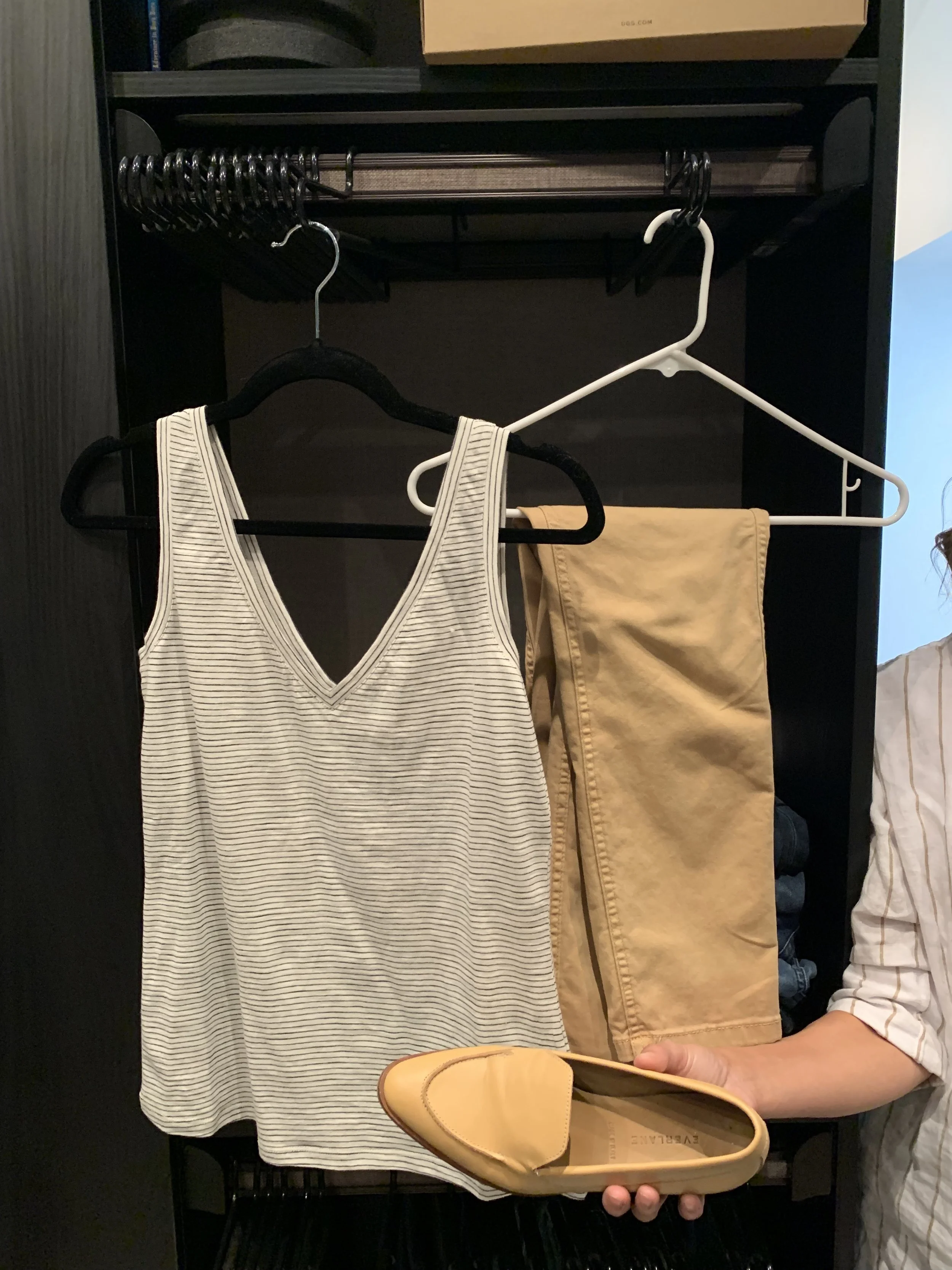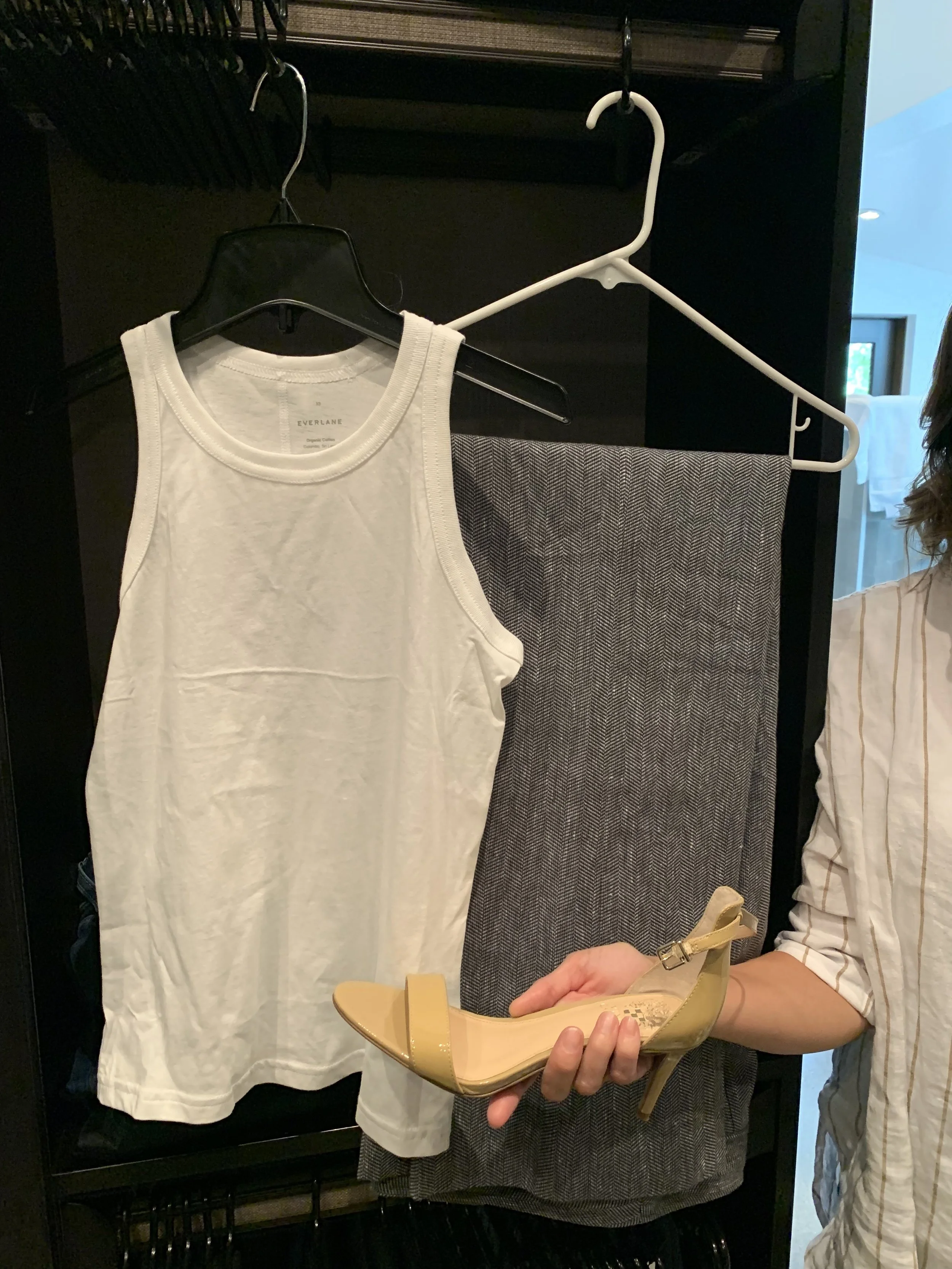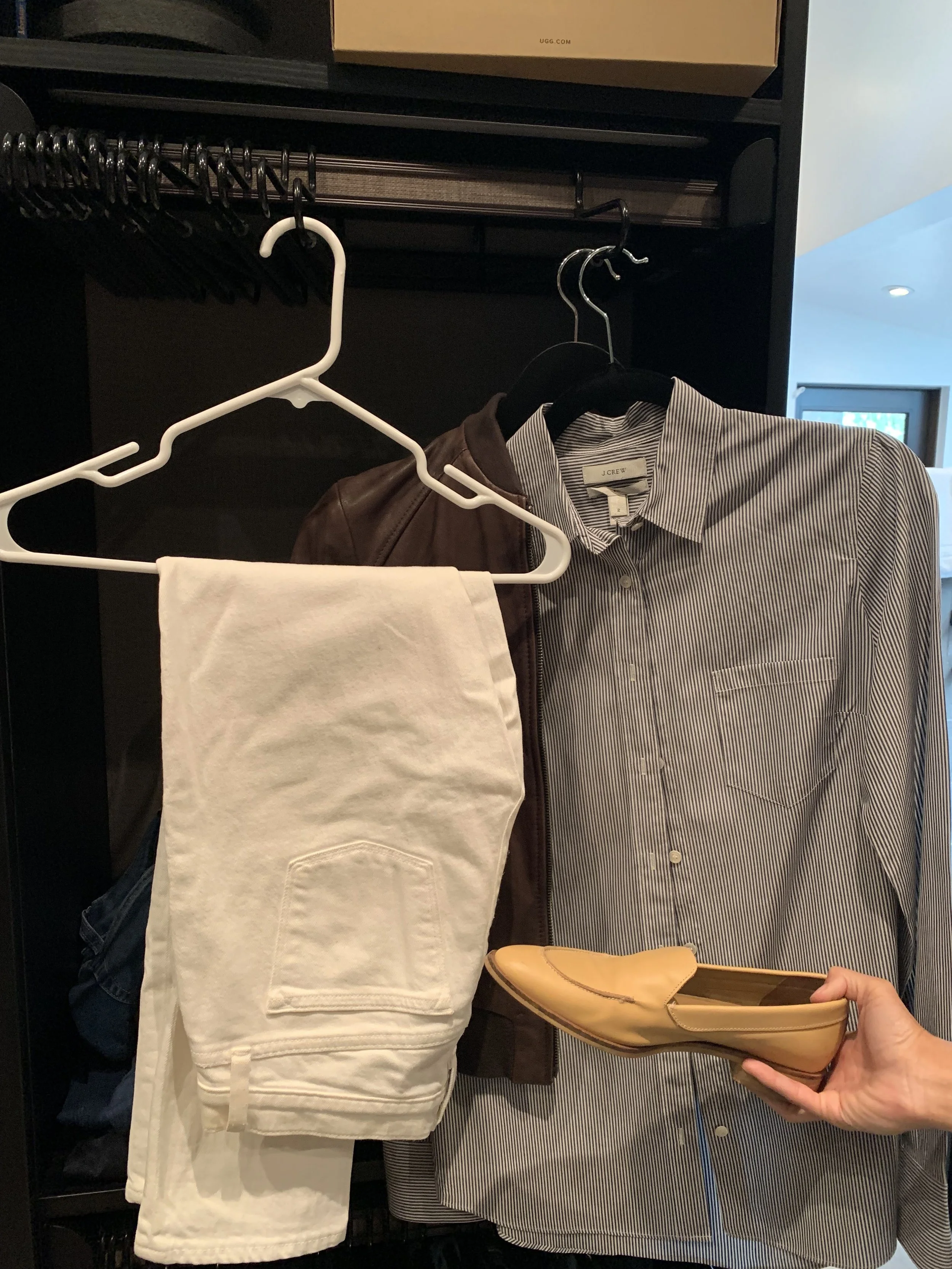 Outfit Strategy: Poplin clients have the option of having the Traditional Outfit Session (during which I create outfits independently in her bedroom and photograph them) or a Collaborative Outfit Session (during which we create outfits together, sometimes even having her try things on, and photograph them). This is an example of a Collaborative Outfit Session. It isn’t as pretty, but it serves the purpose, which is to have easily accessible outfit photos for the client. This approach was essential for Ranya because she prefers neutral pieces that look similar to one another. Working in this way makes it easier for her to distinguish one piece from another and understand IRL what makes one combination work while another does not.