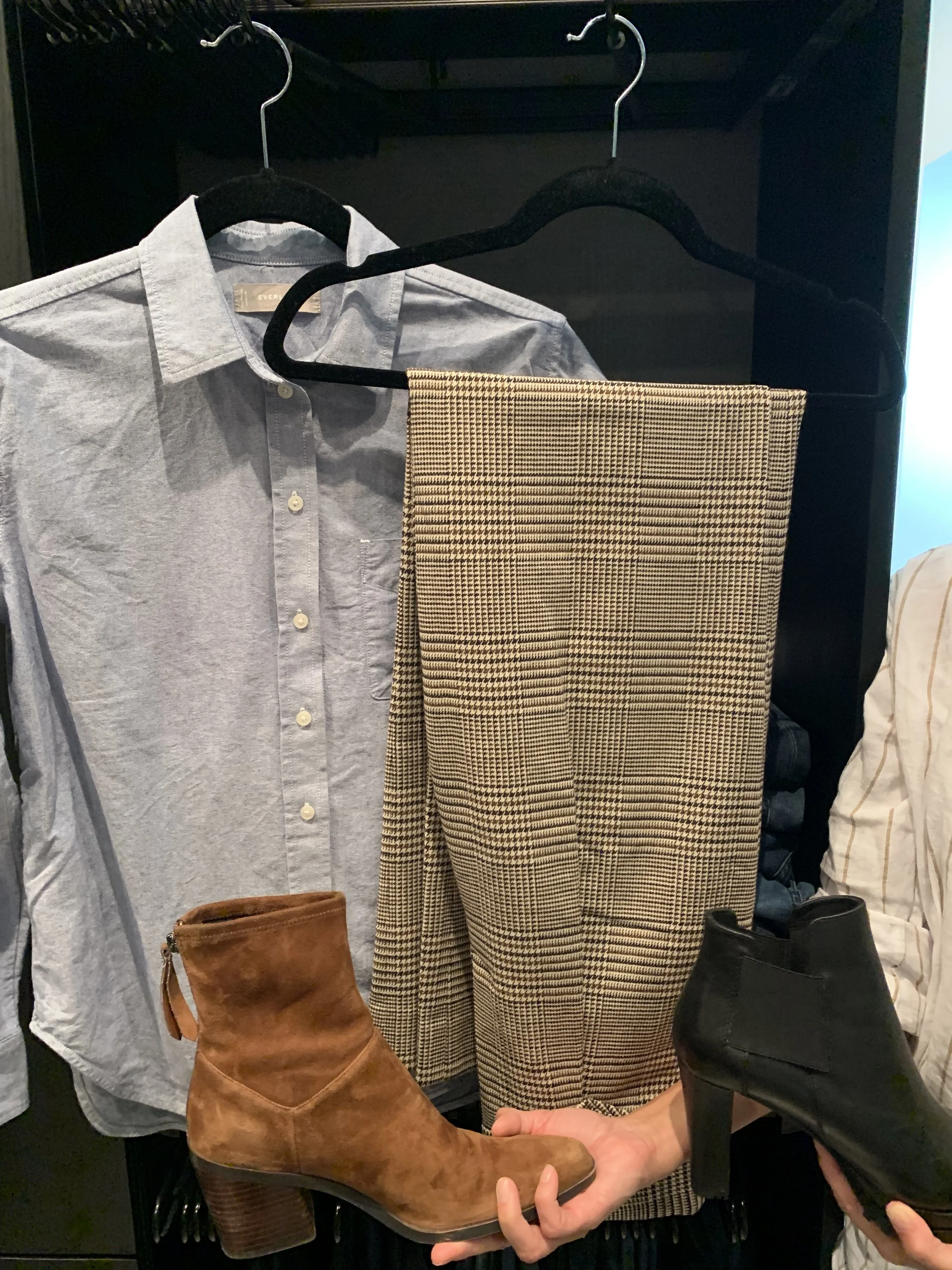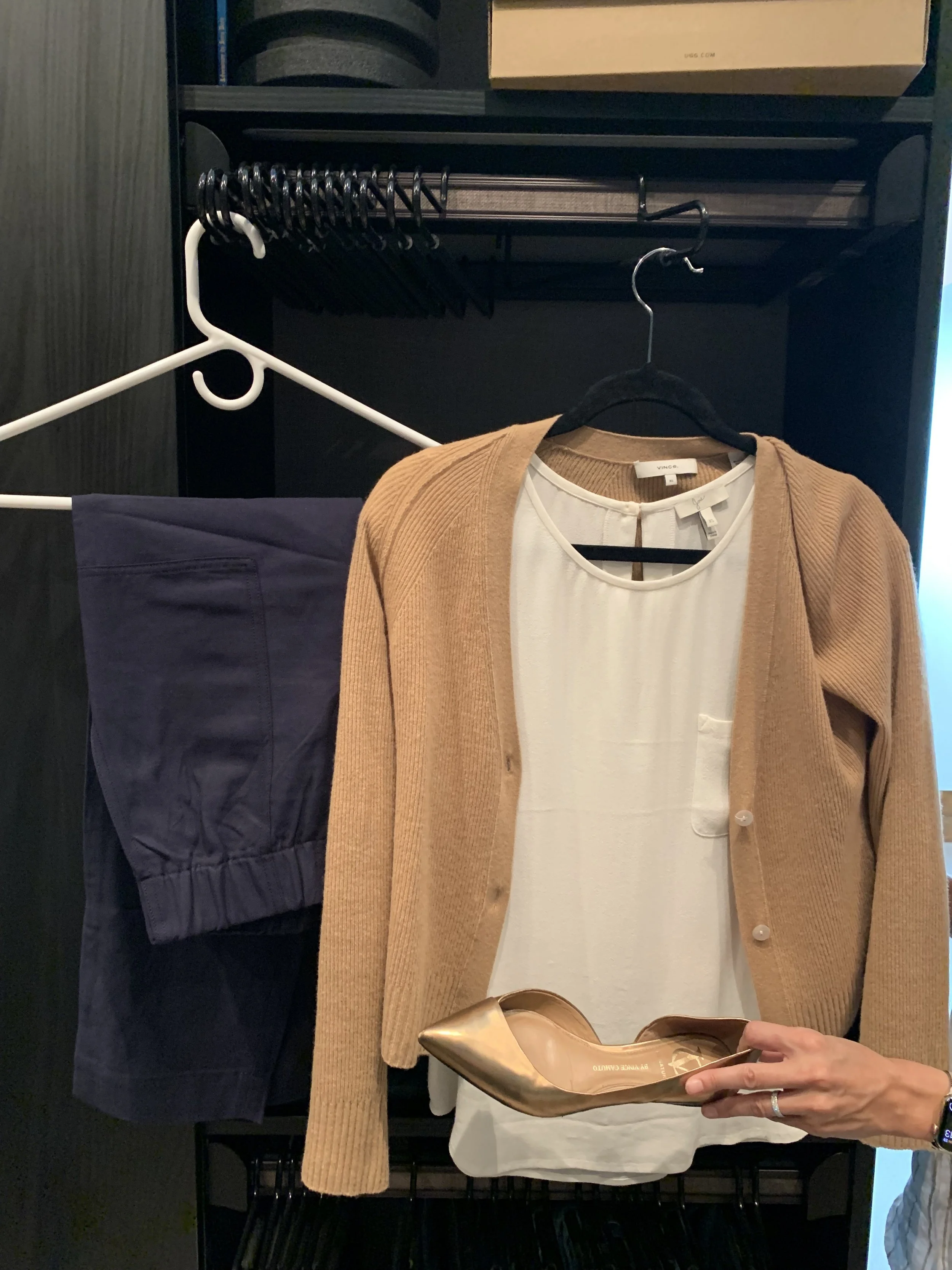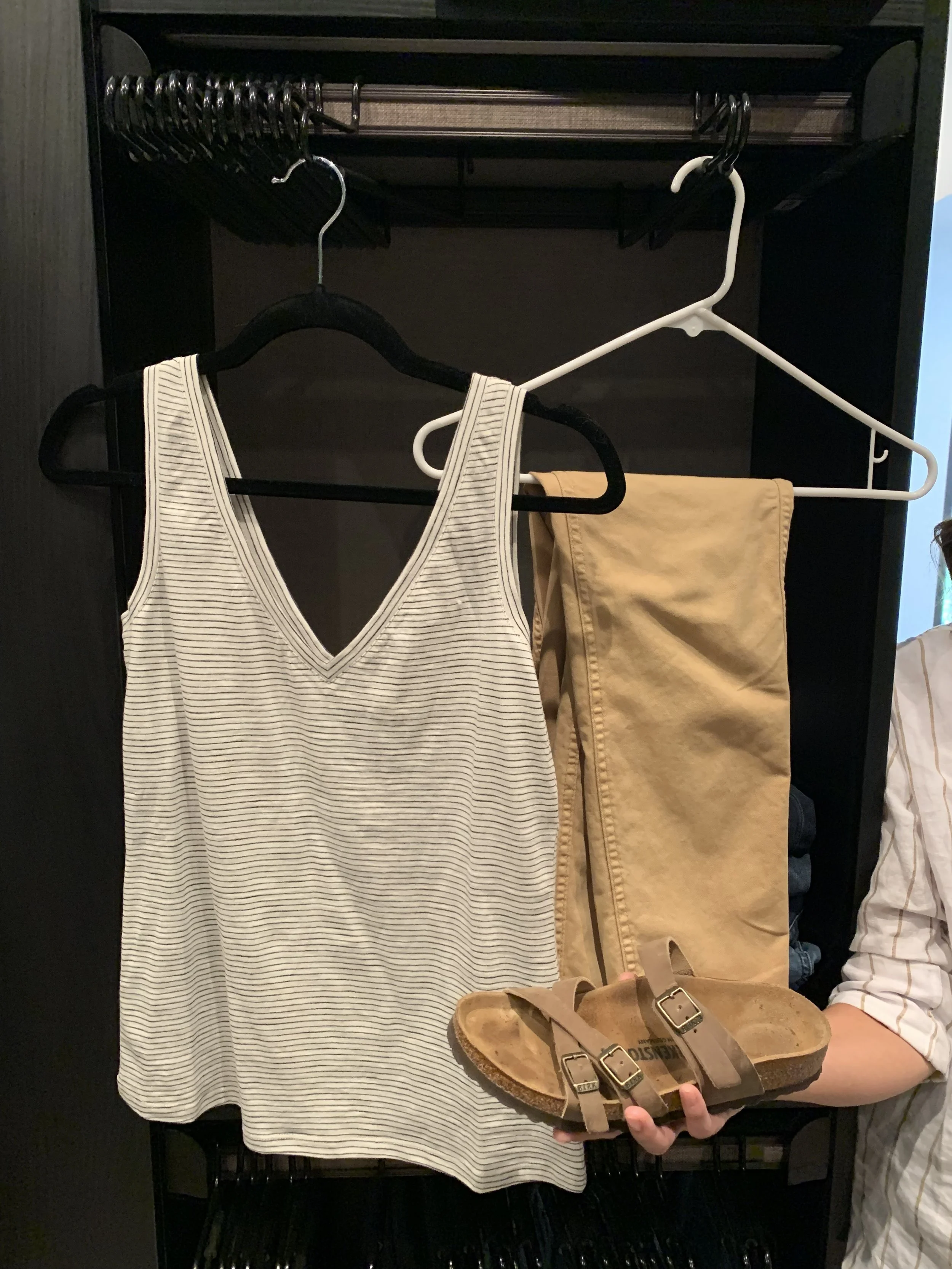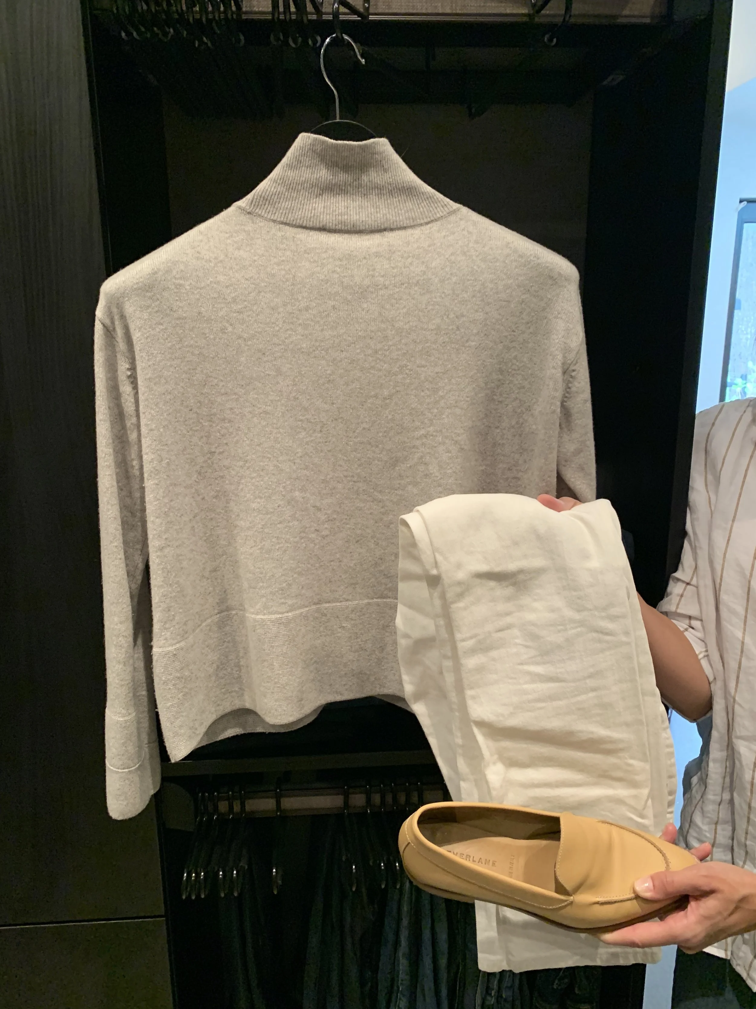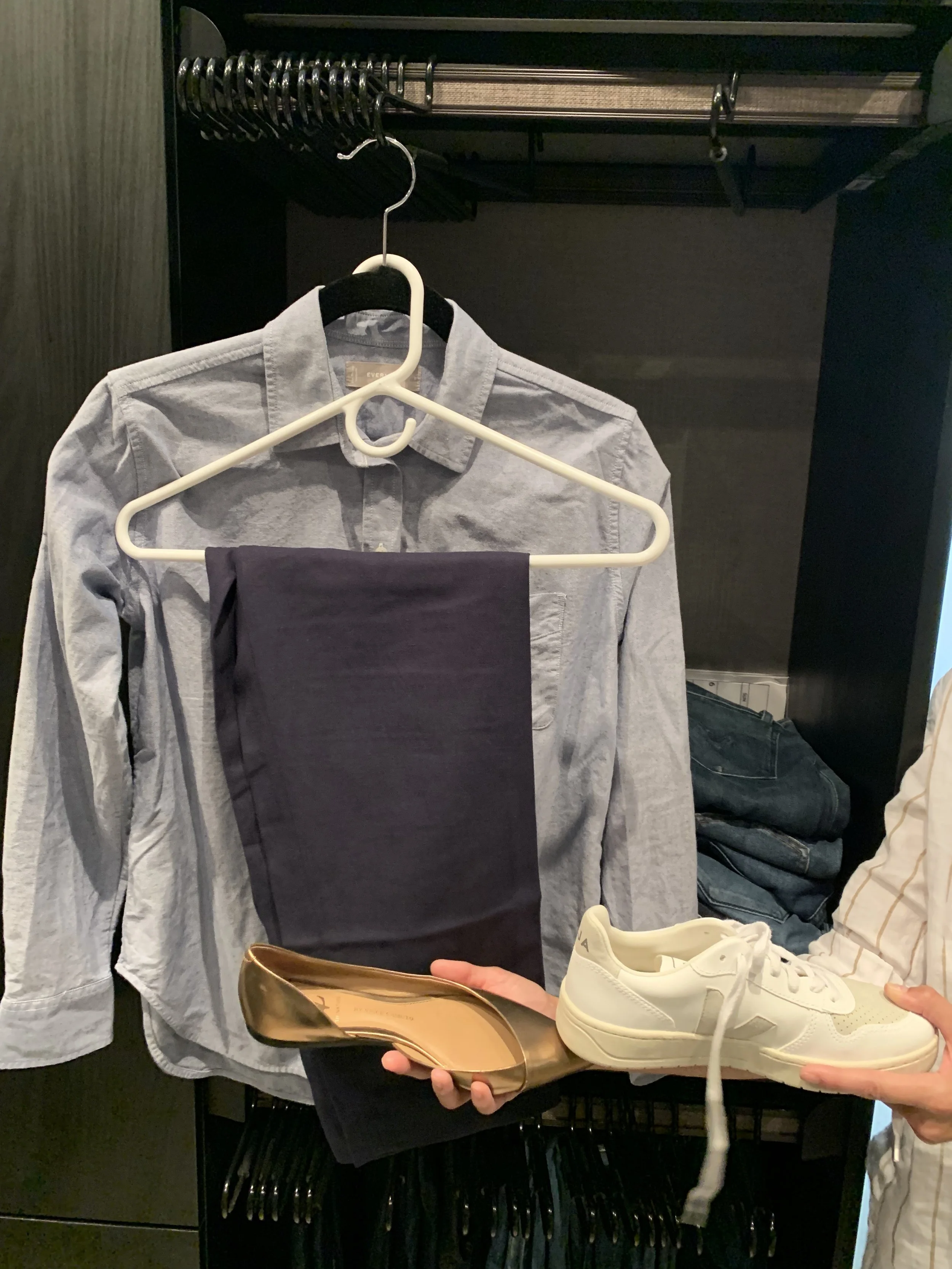 Outfit Strategy: Poplin clients have the option of having the Traditional Outfit Session (during which I create outfits independently in her bedroom and photograph them) or a Collaborative Outfit Session (during which we create outfits together, sometimes even having her try things on, and photograph them). This is an example of a Collaborative Outfit Session. It isn’t as pretty, but it serves the purpose, which is to have easily accessible outfit photos for the client. This approach was essential for Ranya because she prefers neutral pieces that look similar to one another. Working in this way makes it easier for her to distinguish one piece from another and understand IRL what makes one combination work while another does not.
