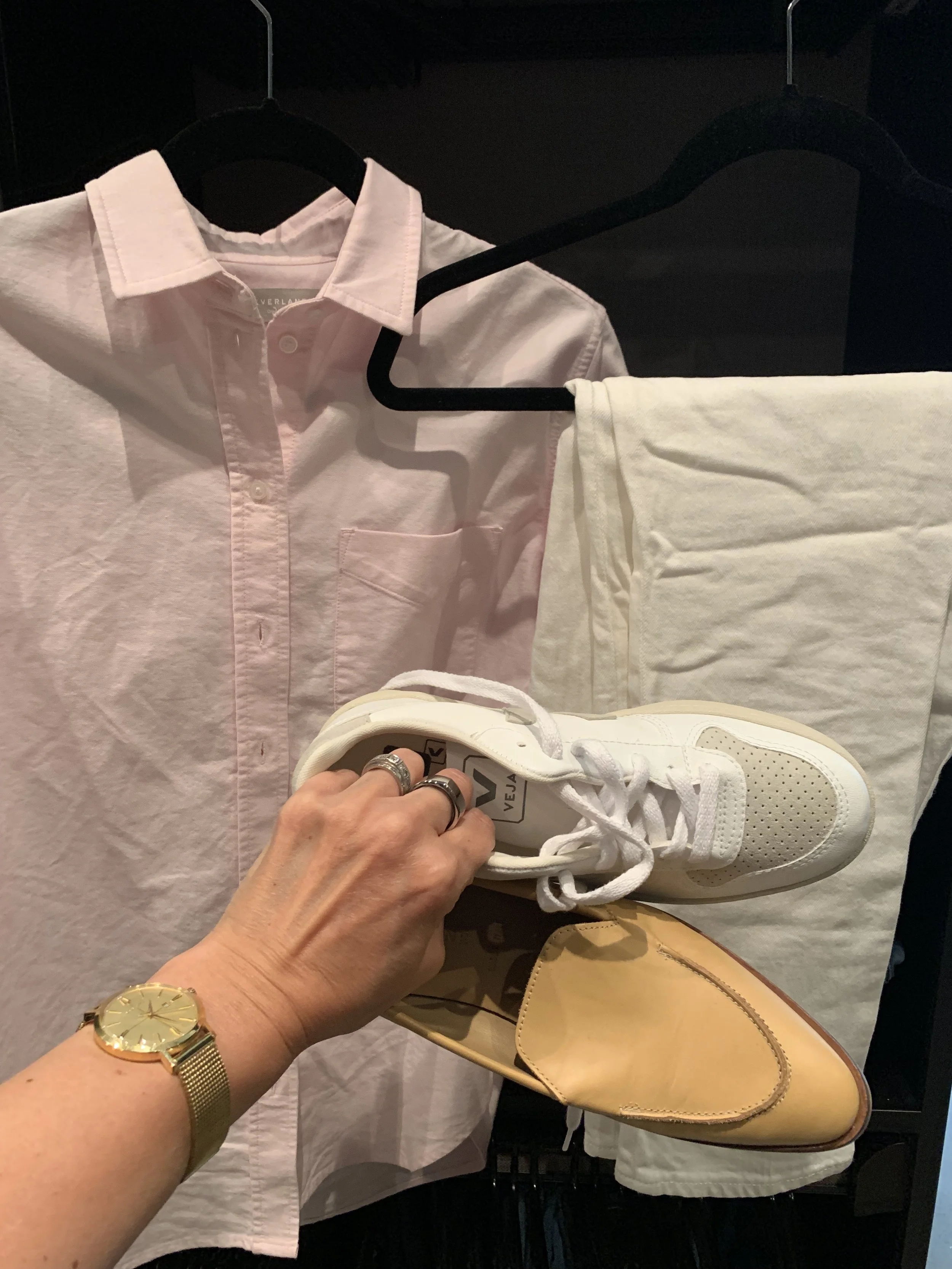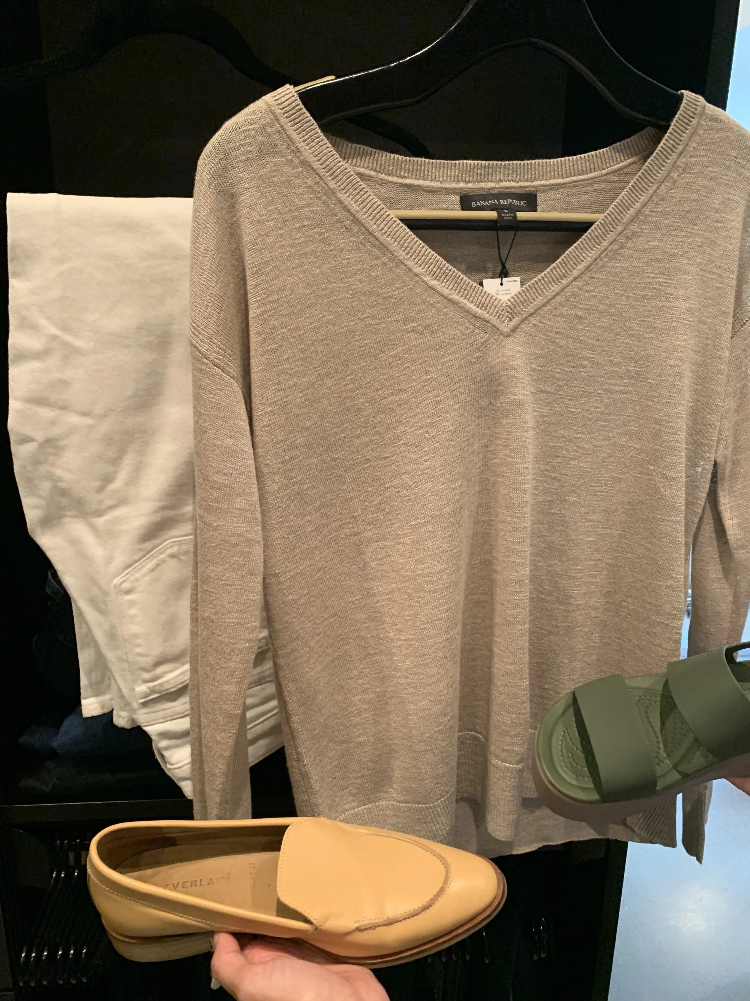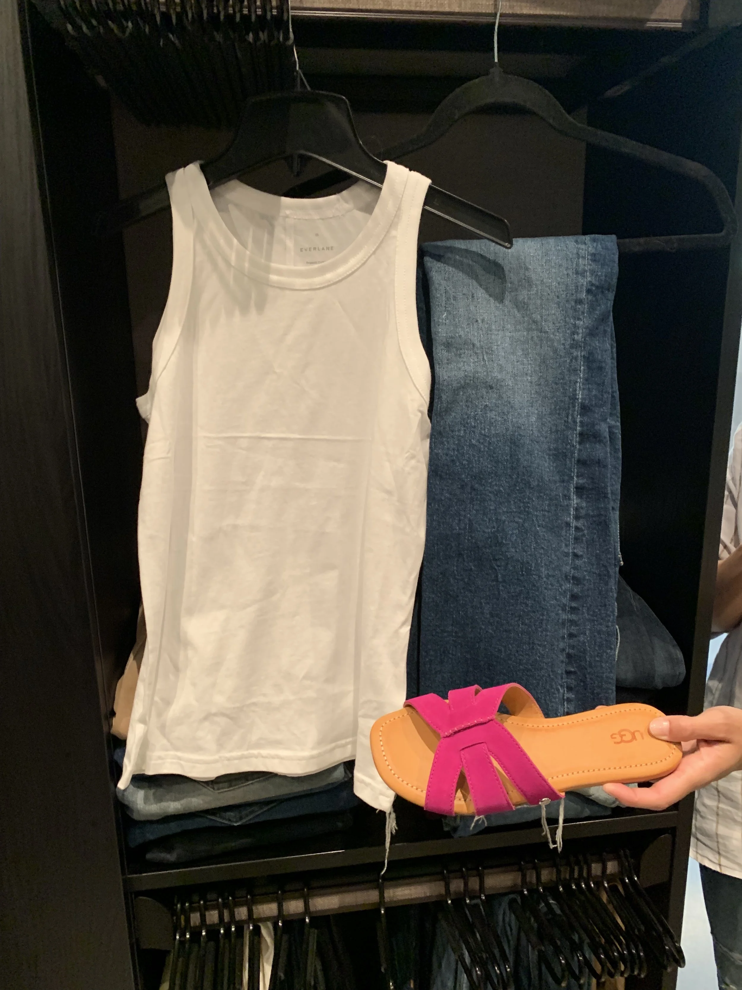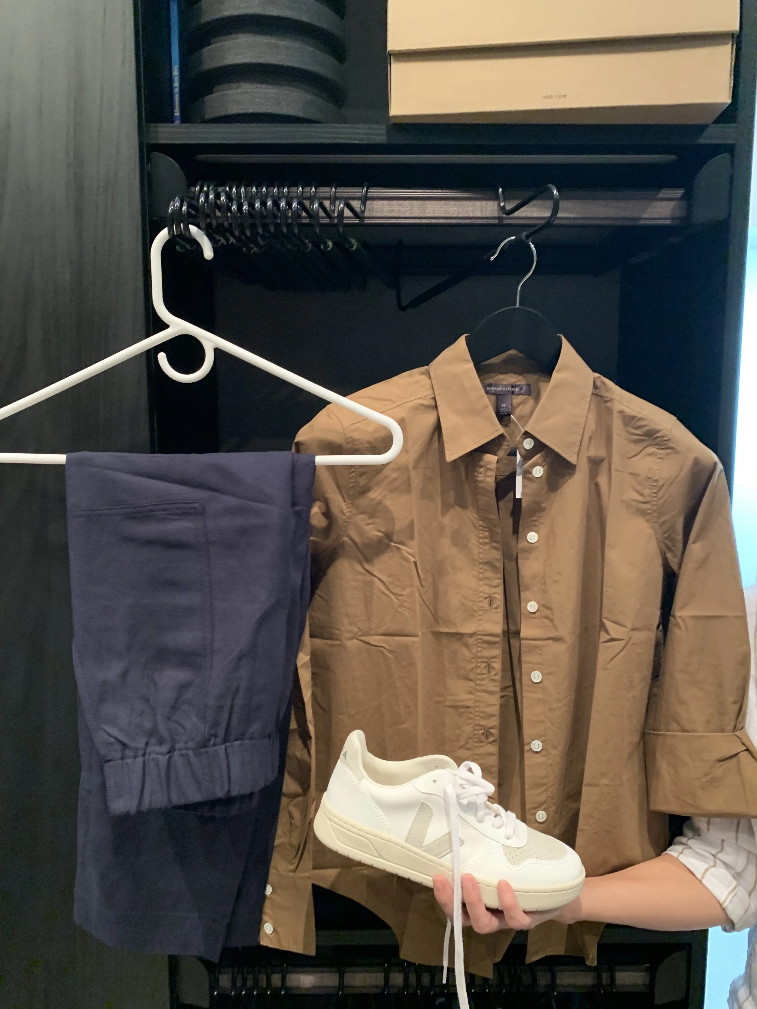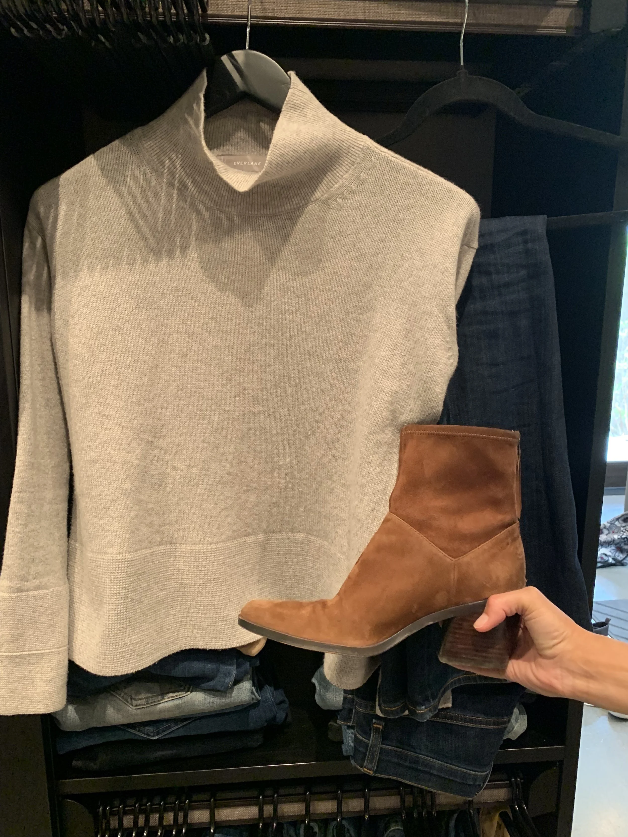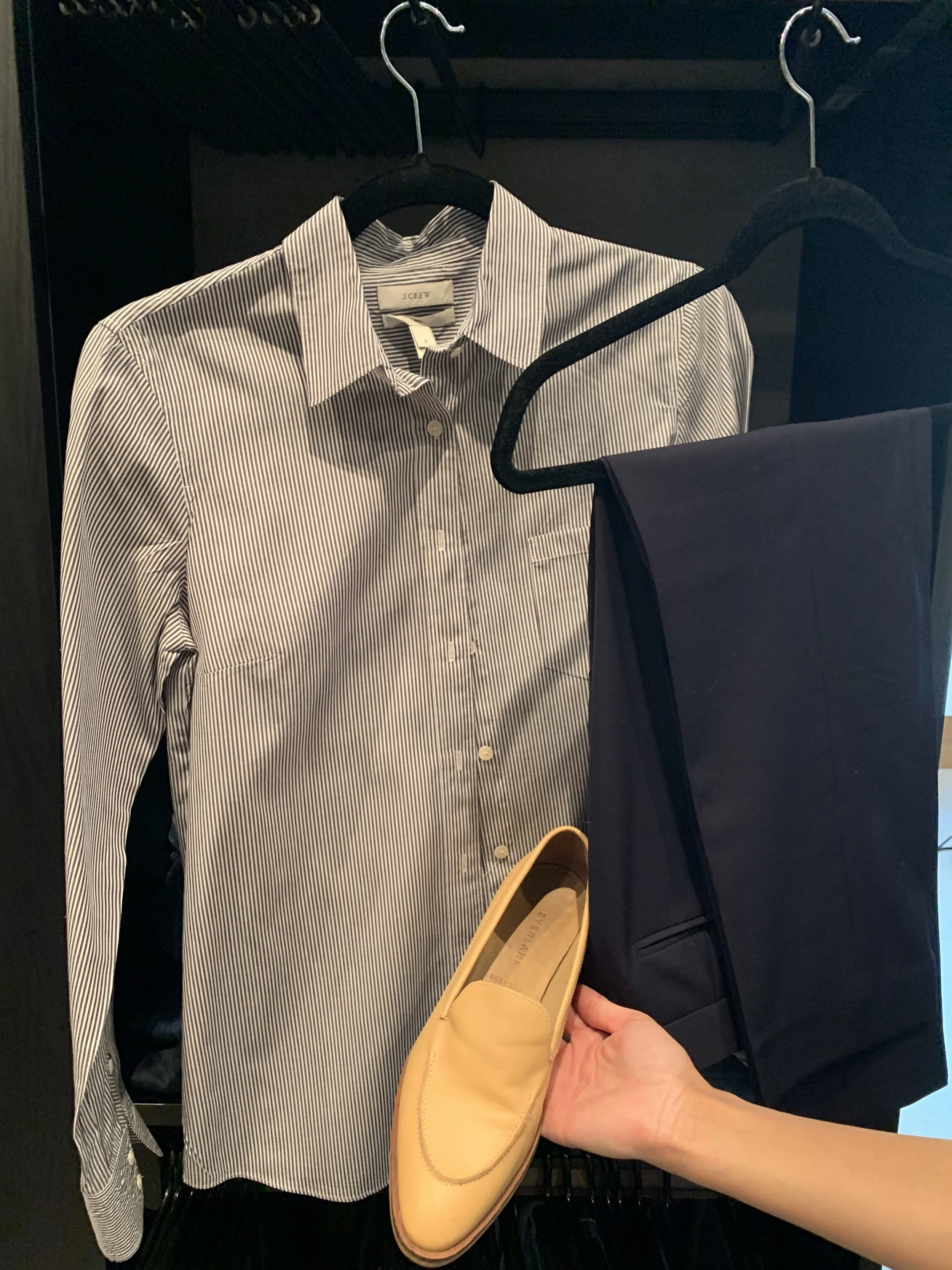 Outfit Strategy: Poplin clients have the option of having the Traditional Outfit Session (during which I create outfits independently in her bedroom and photograph them) or a Collaborative Outfit Session (during which we create outfits together, sometimes even having her try things on, and photograph them). This is an example of a Collaborative Outfit Session. It isn’t as pretty, but it serves the purpose, which is to have easily accessible outfit photos for the client. This approach was essential for Ranya because she prefers neutral pieces that look similar to one another. Working in this way makes it easier for her to distinguish one piece from another and understand IRL what makes one combination work while another does not.