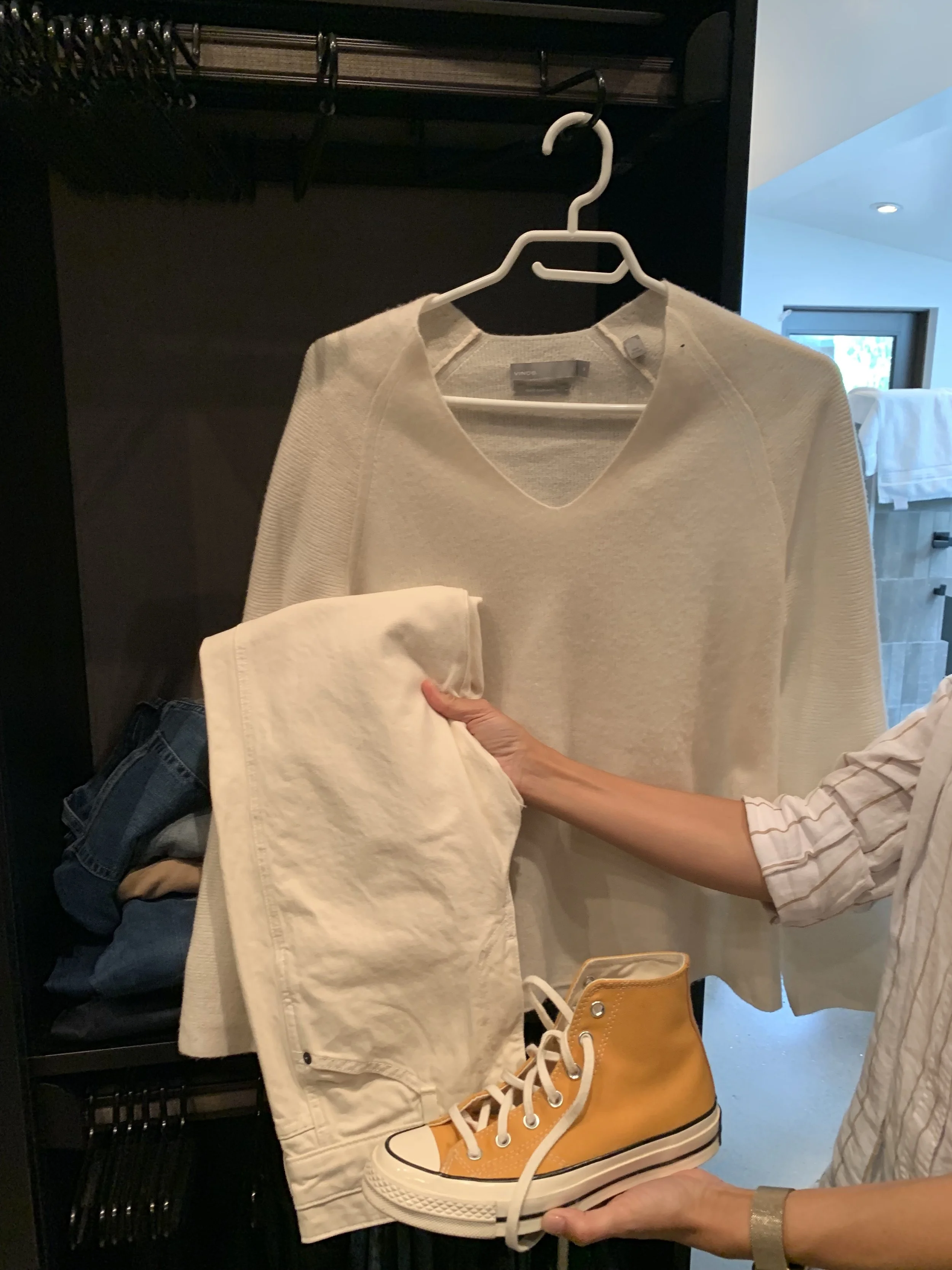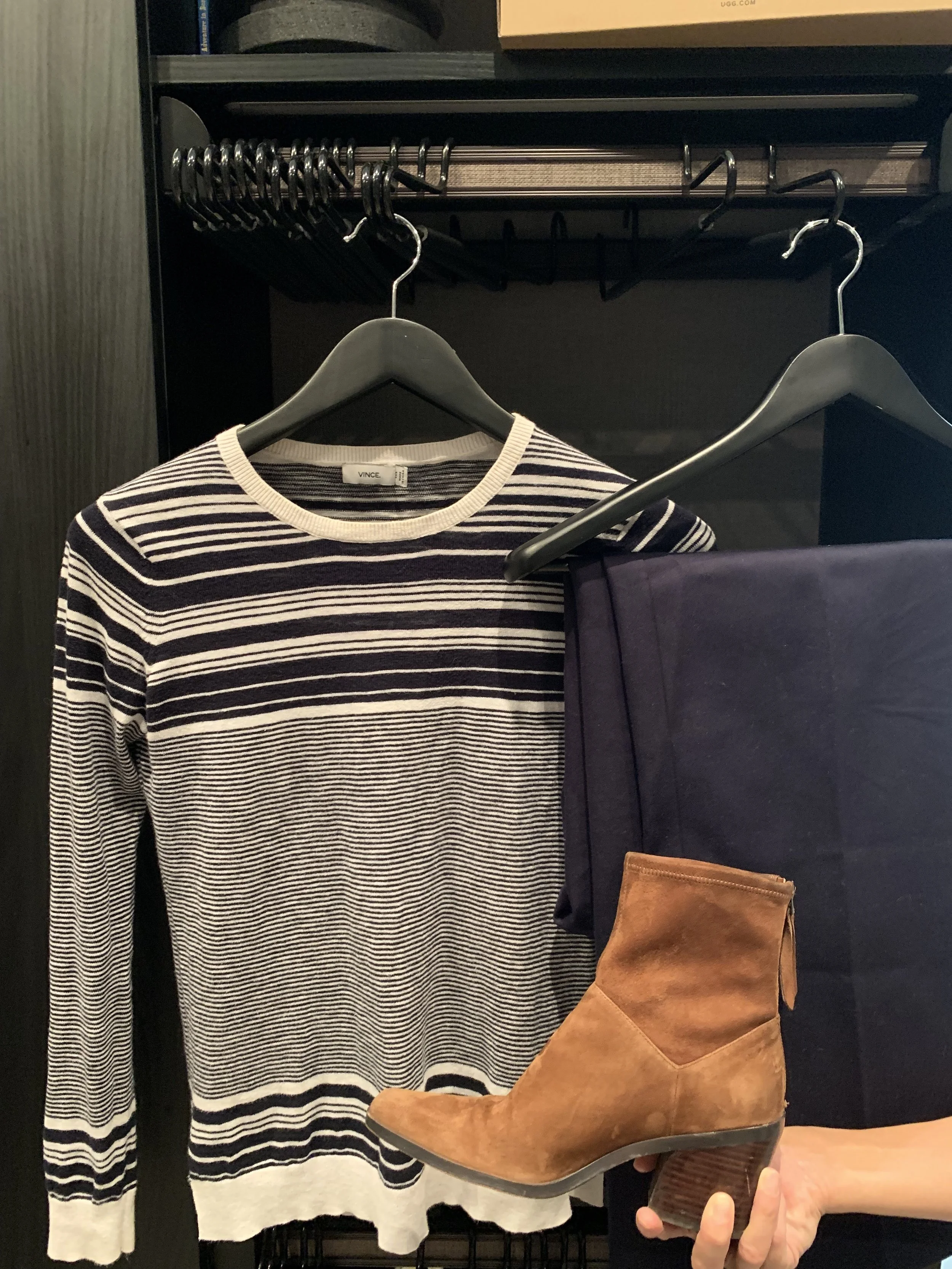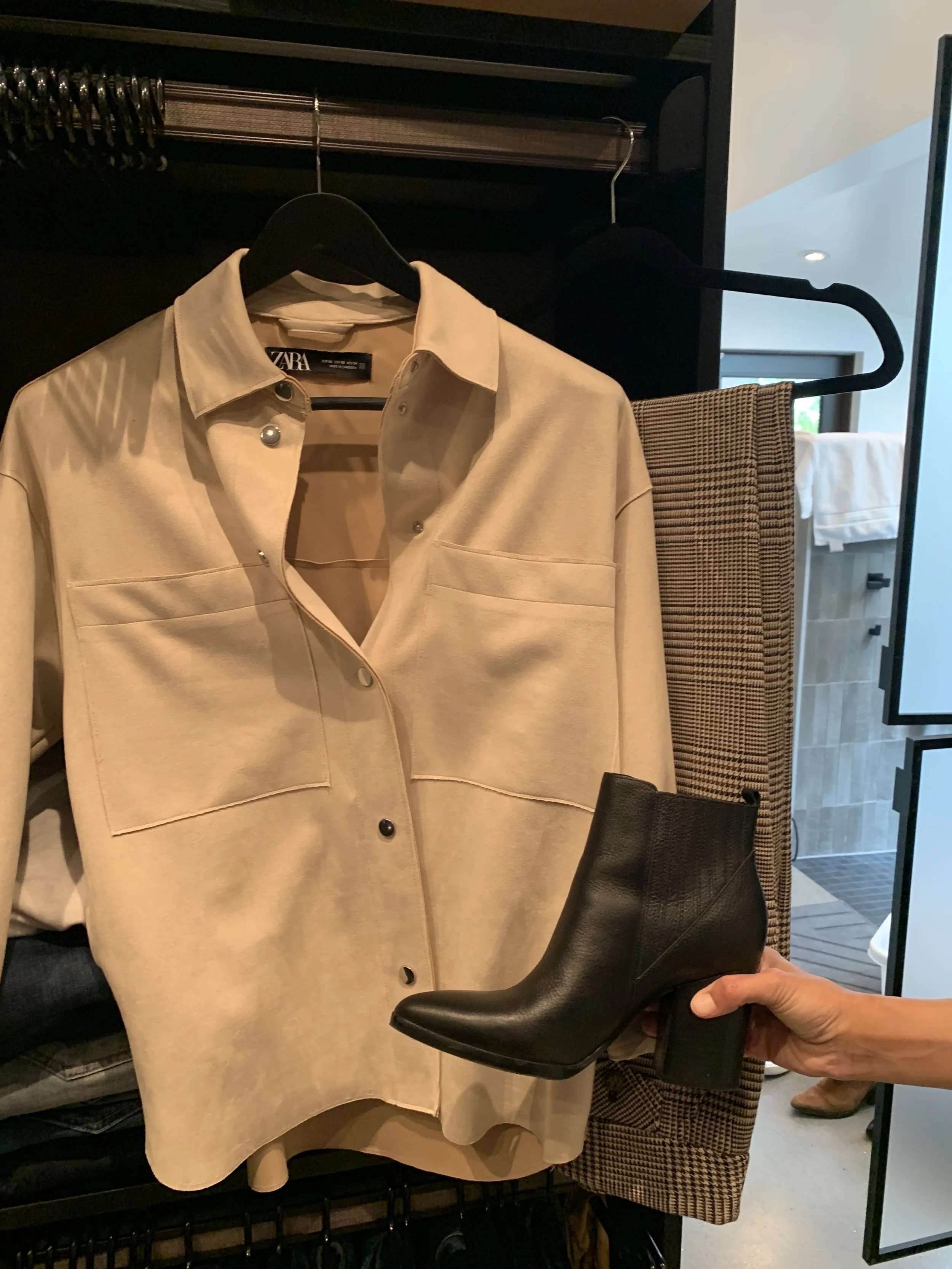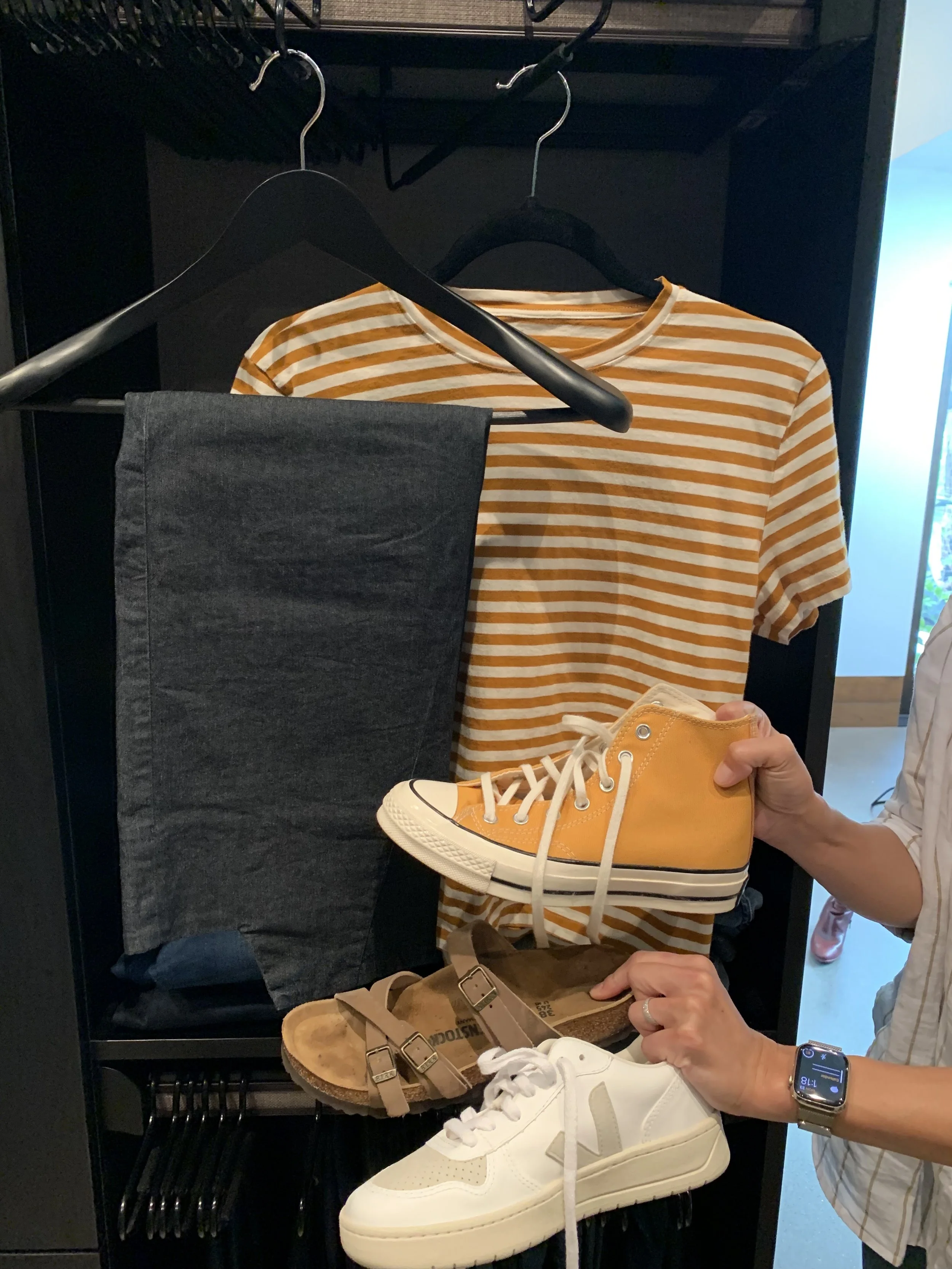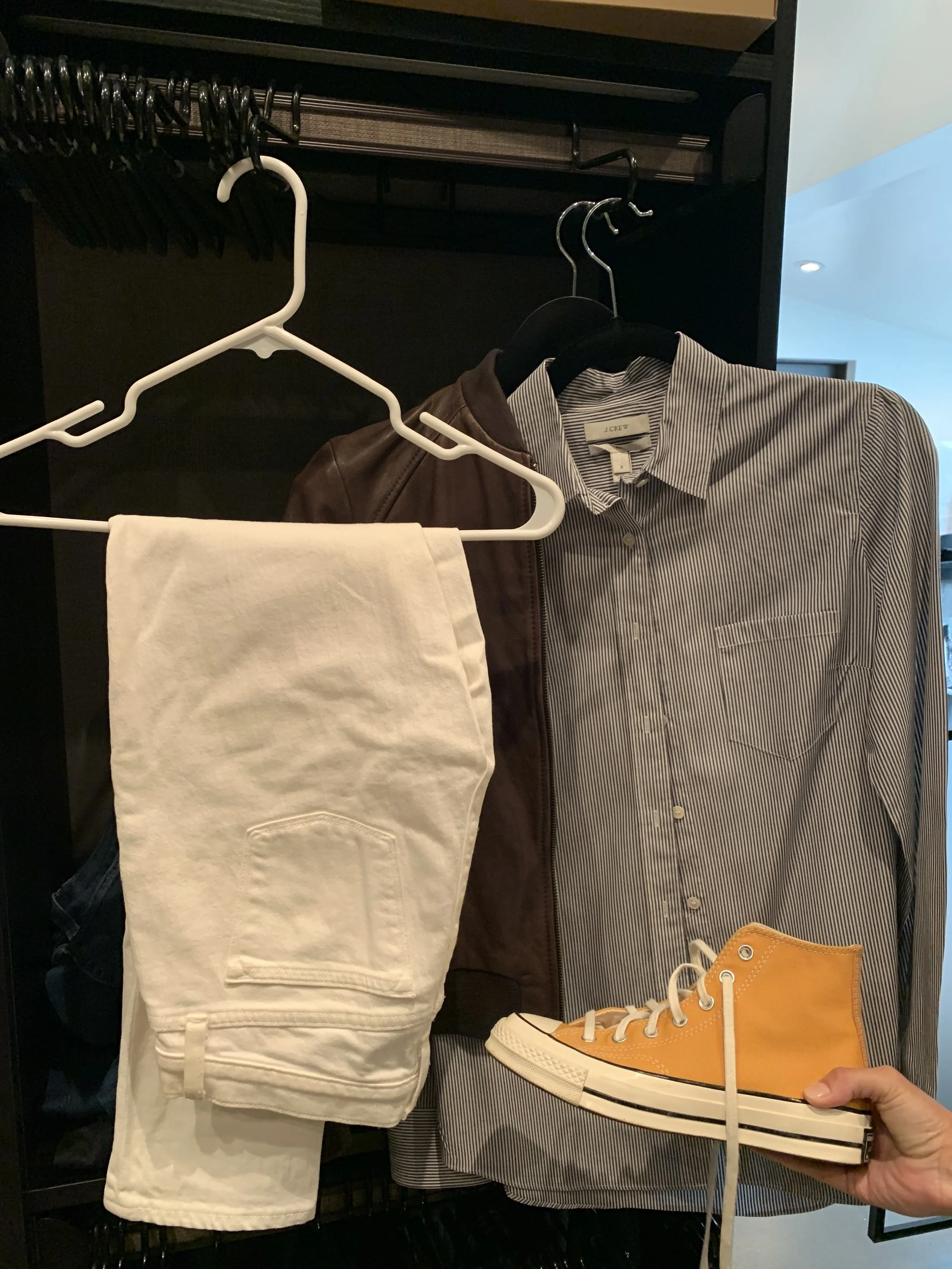 Outfit Strategy: Poplin clients have the option of having the Traditional Outfit Session (during which I create outfits independently in her bedroom and photograph them) or a Collaborative Outfit Session (during which we create outfits together, sometimes even having her try things on, and photograph them). This is an example of a Collaborative Outfit Session. It isn’t as pretty, but it serves the purpose, which is to have easily accessible outfit photos for the client. This approach was essential for Ranya because she prefers neutral pieces that look similar to one another. Working in this way makes it easier for her to distinguish one piece from another and understand IRL what makes one combination work while another does not.