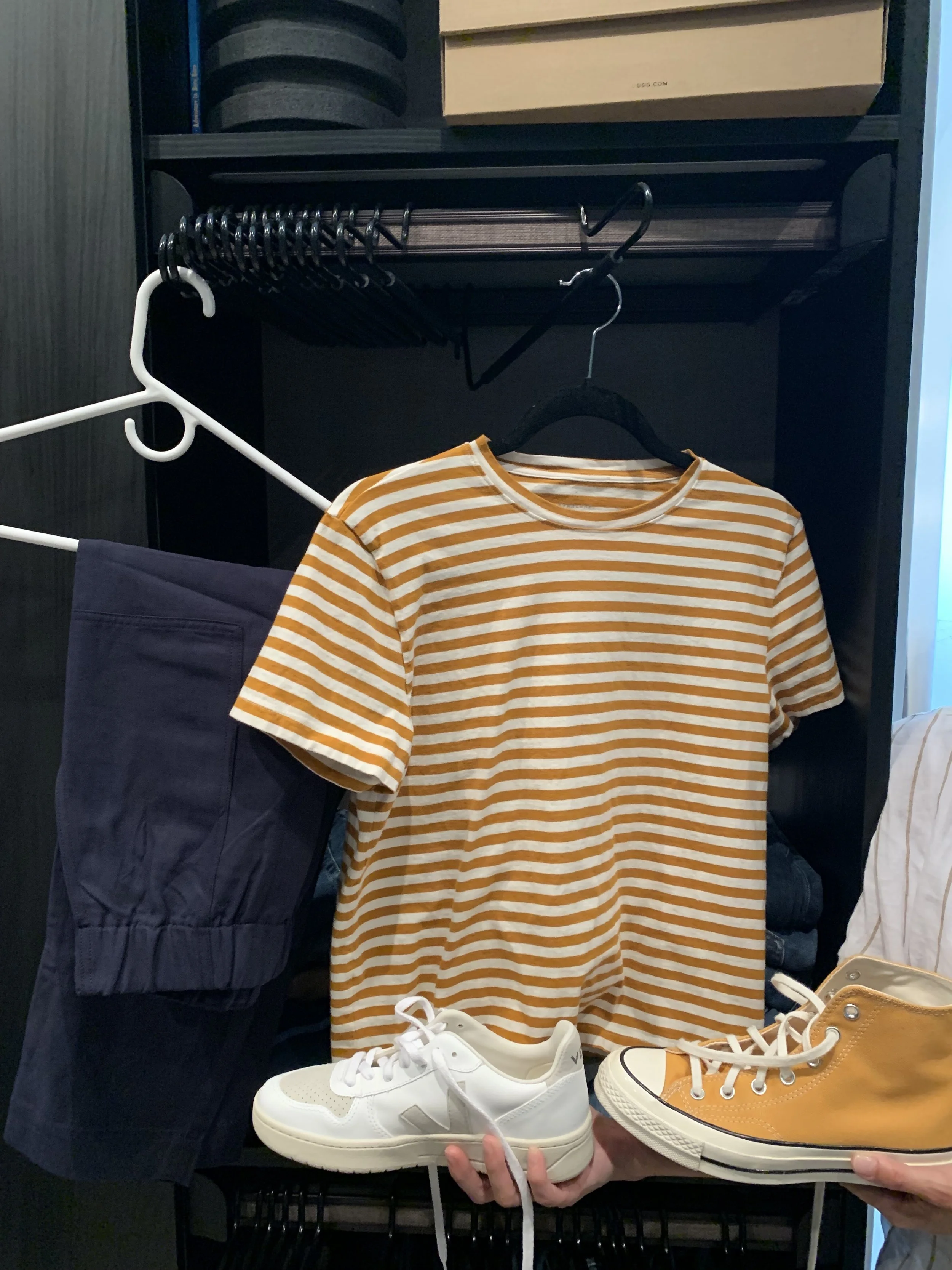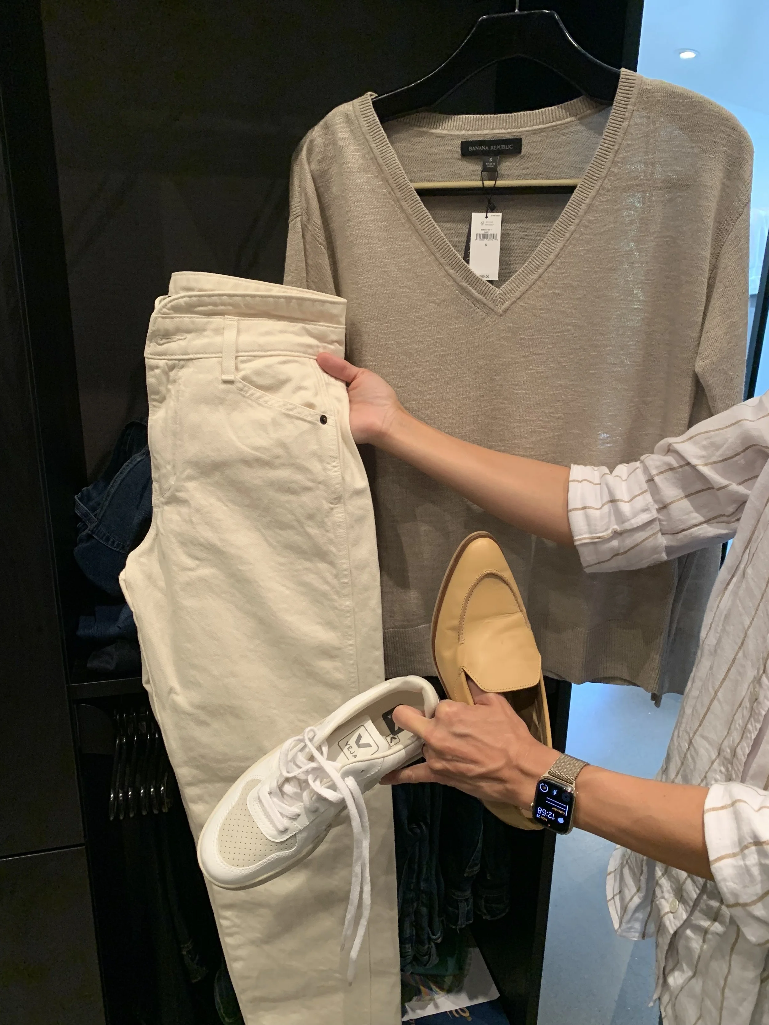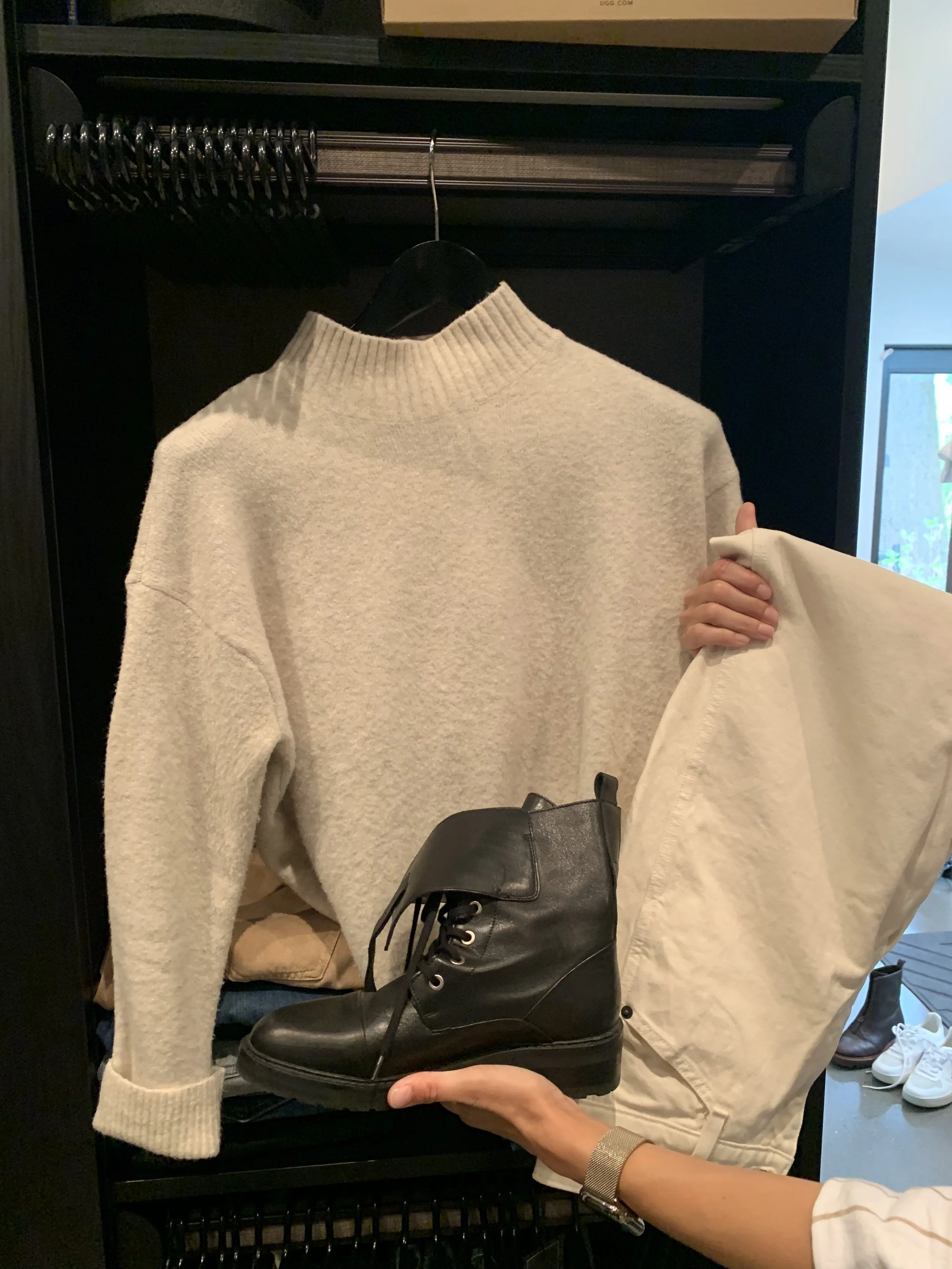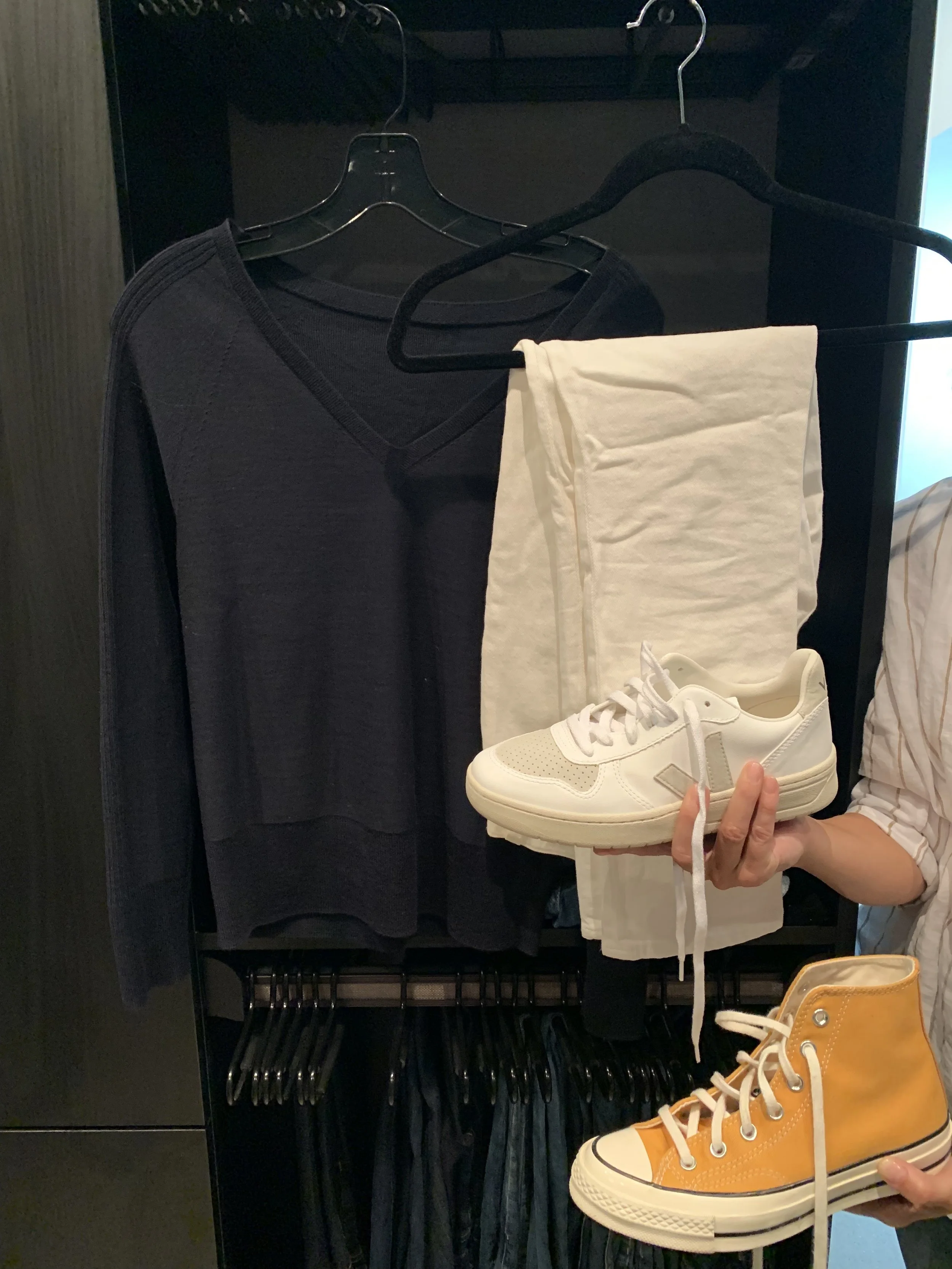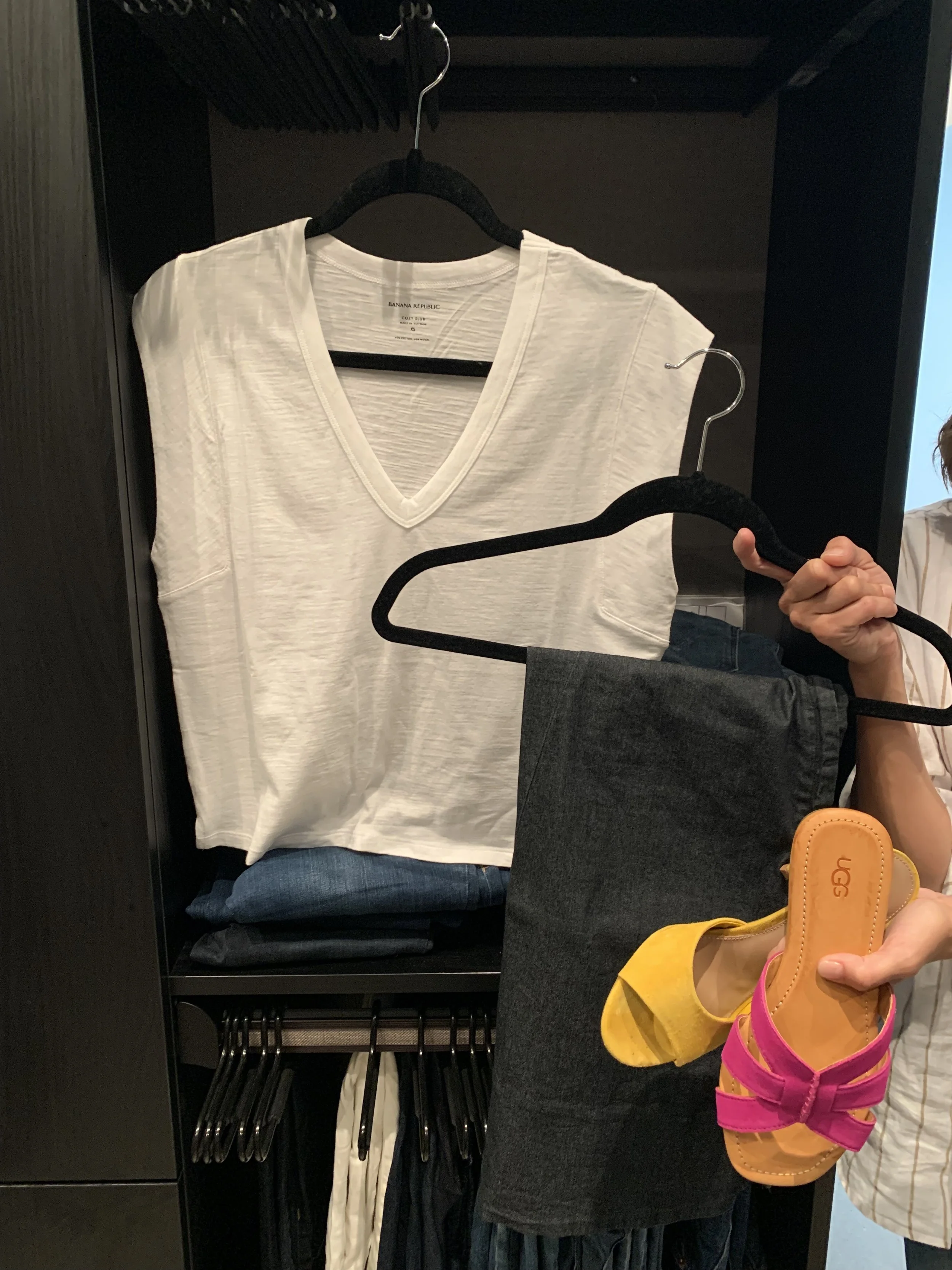 Outfit Strategy: Poplin clients have the option of having the Traditional Outfit Session (during which I create outfits independently in her bedroom and photograph them) or a Collaborative Outfit Session (during which we create outfits together, sometimes even having her try things on, and photograph them). This is an example of a Collaborative Outfit Session. It isn’t as pretty, but it serves the purpose, which is to have easily accessible outfit photos for the client. This approach was essential for Ranya because she prefers neutral pieces that look similar to one another. Working in this way makes it easier for her to distinguish one piece from another and understand IRL what makes one combination work while another does not.
