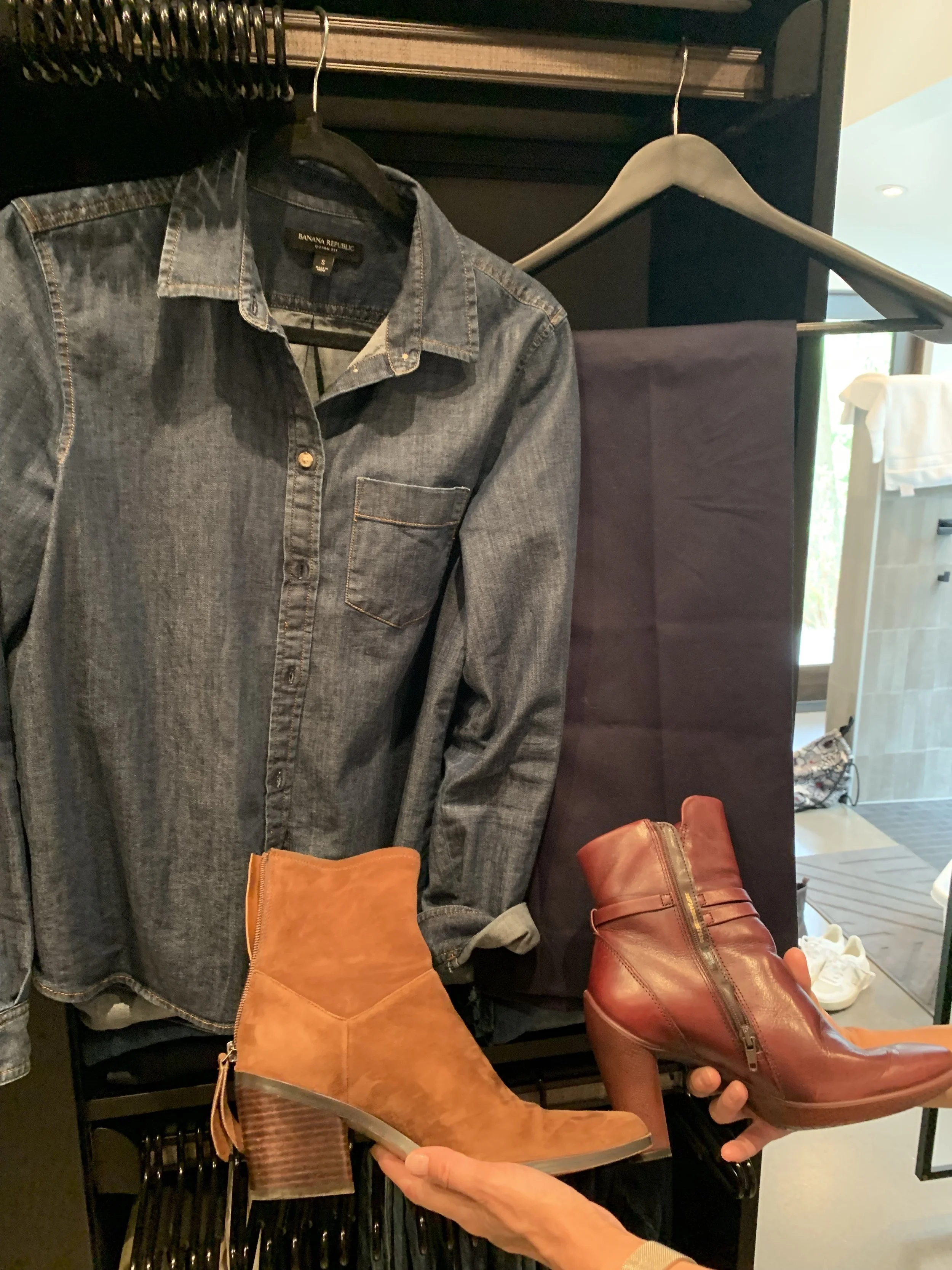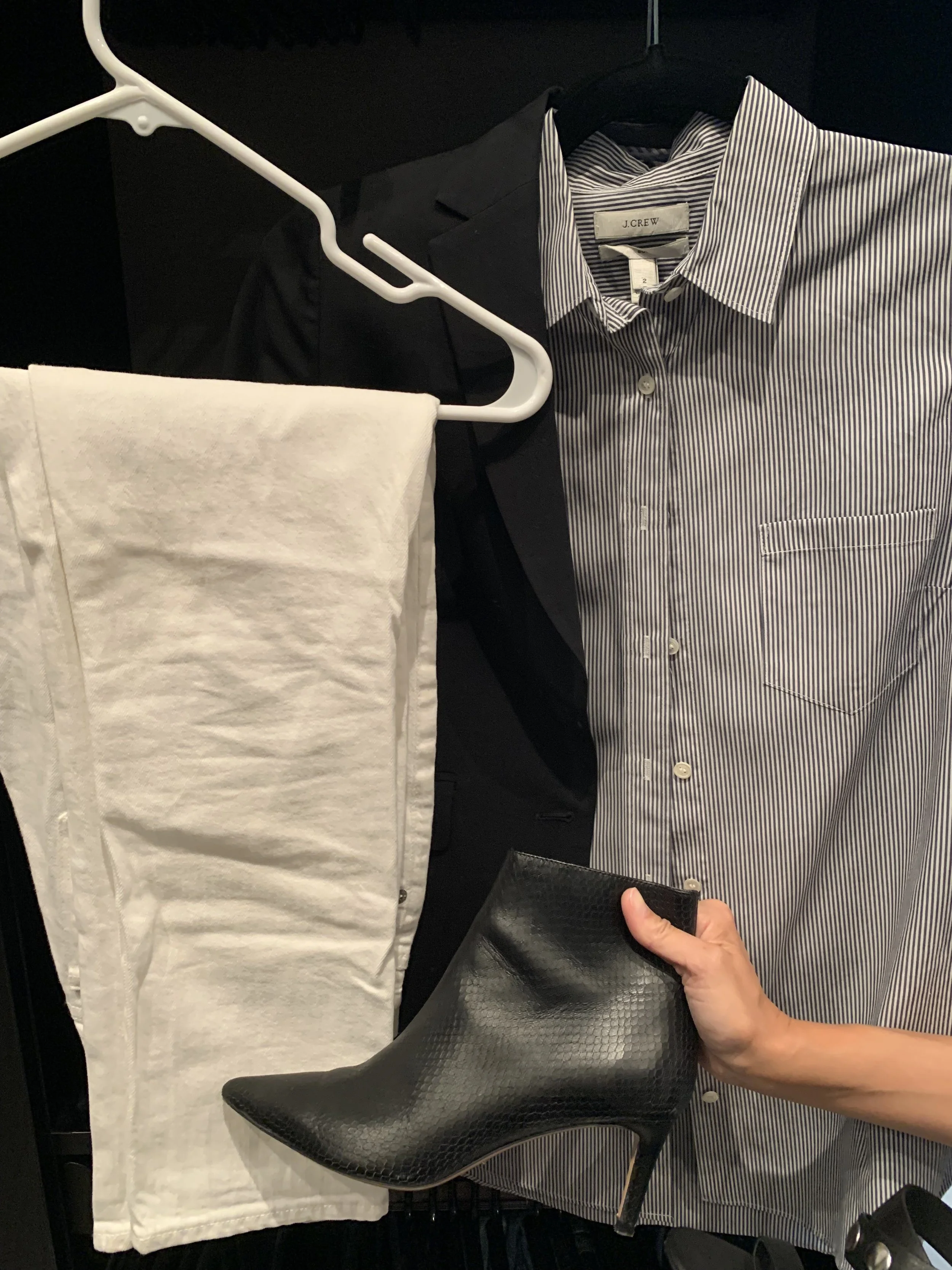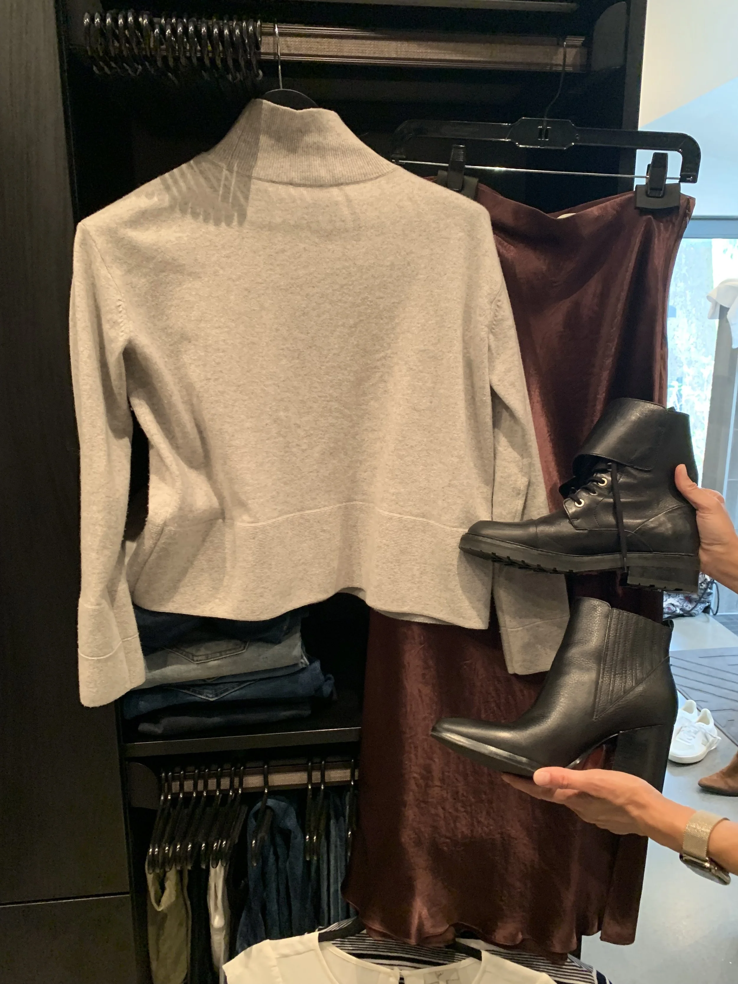 Heads up! These photos aren’t perfect. That’s because our focus is creating as many outfits as possible rather than having perfect photos. Fun fact: each outfit session occurs in the client’s bedroom, so that also impacts the final images. The takeaway here is progress not perfection, my dear. Create useful tools and don’t get hung up on unrealistic expectations. Have fun and get inspired!