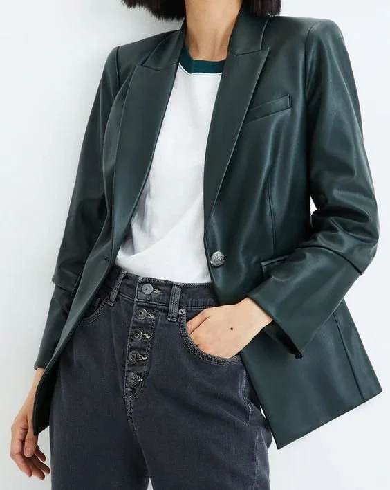 Okay, I think you need one vegan leather or leather blazer. Now, which one to choose? You’ve got three options. Sure, you can get more than one. But, ideally, you’ll end up with at least one. I like this one because it’s fitted, the price is stellar and of course, the color is a win.