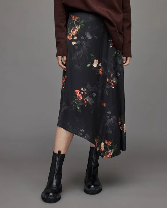 Dark floral speaks to you and this skirt from All Saints is magical. The ruching flatters your frame and it will be easy to pair with your new and existing pieces.