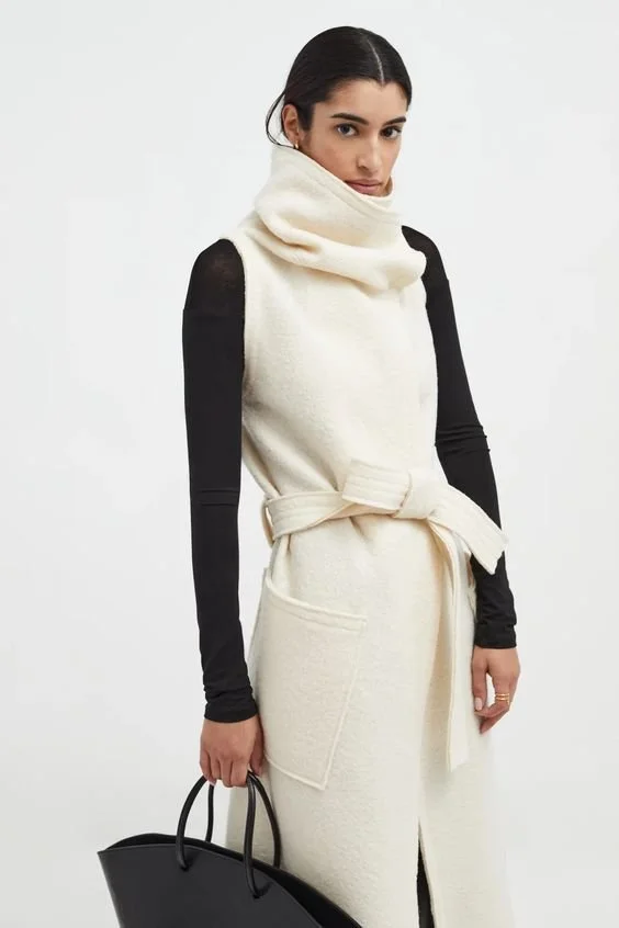 I’m very excited about monochromatic looks on you, especially in winter white. It’s powerful, shows confidence and is incredibly easy when you roll out of bed. We’ve opted for winter white/ cream on this list rather than white as that’s your preference. Not to worry, everything will work together easily. This cozy sweater highlights your feminine features and keeps you cozy while showing off your waist.