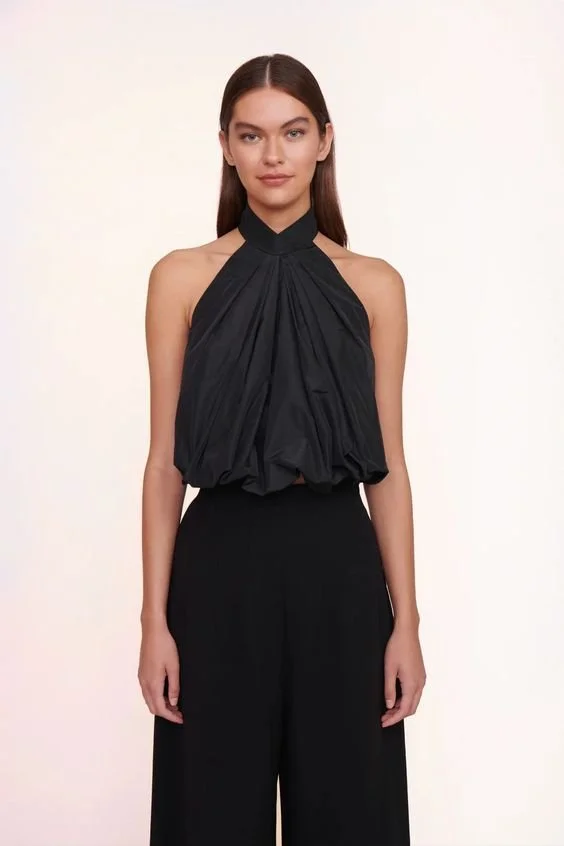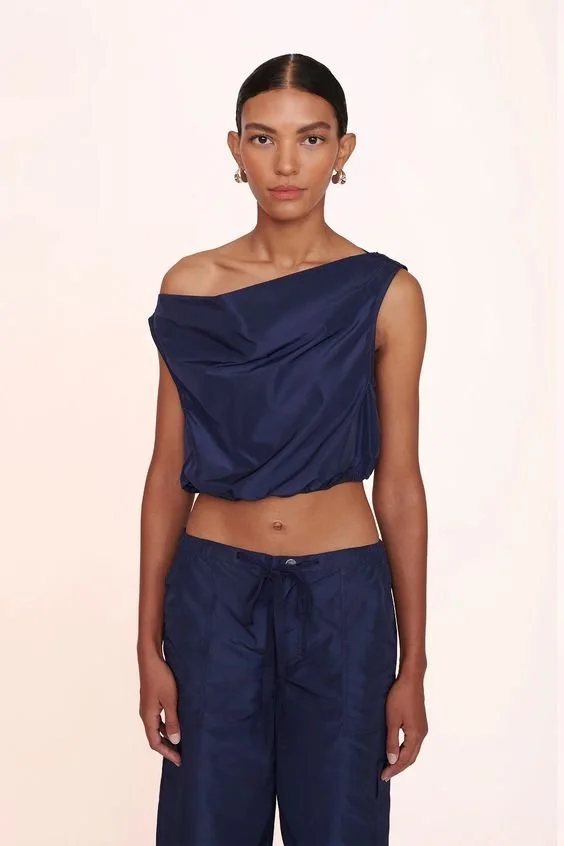For a much dressier occasion, Staud is a great fit for you. Elegant, unique, functional and with colors that make you look your best, this brand will be a fun go-to. (You won’t love it all, but you’ll find gems there.) This luxurious crop top is easy to mix and match with this entire list depending on the situation and of course, it flatters your frame.
