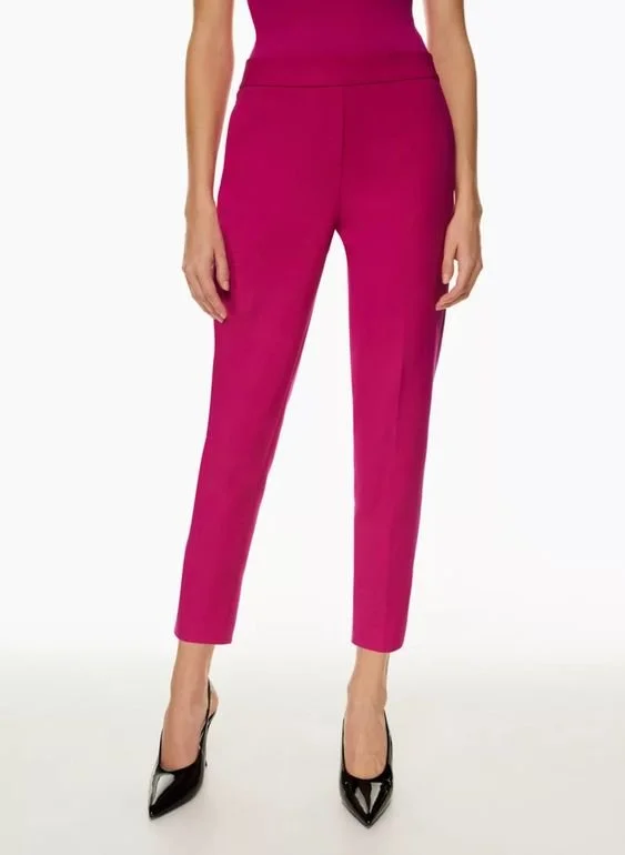Babaton Conan Cropped Pant. Available in several colors. Aritzia. $148. Content: 61% recycled polyester, 26% viscose, 7% cotton, 6% elastane. Care: Machine wash. Sustainable.