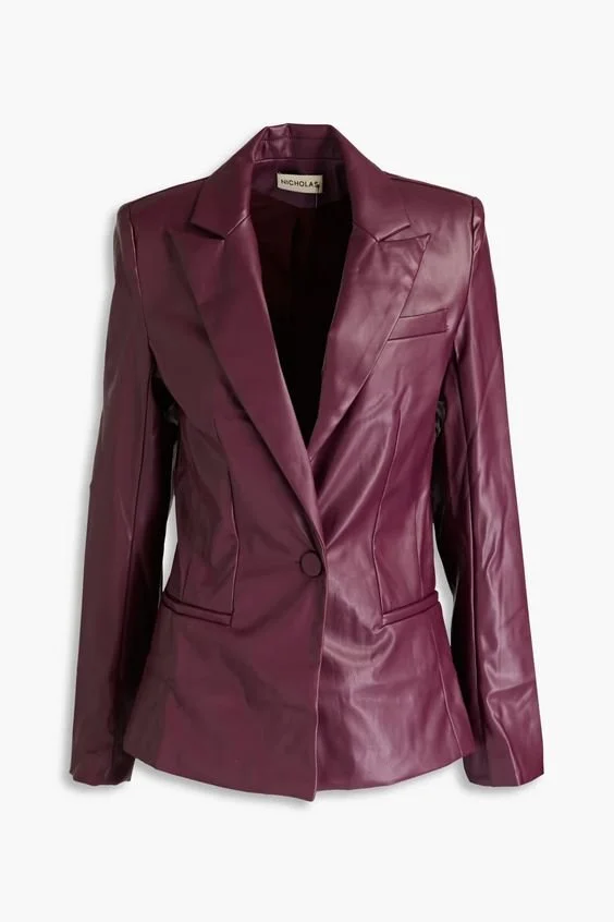 NICHOLAS Everly faux leather blazer. The Outnet. Was: $395. Now: $178. 55% Polyurethane 45% Viscose.