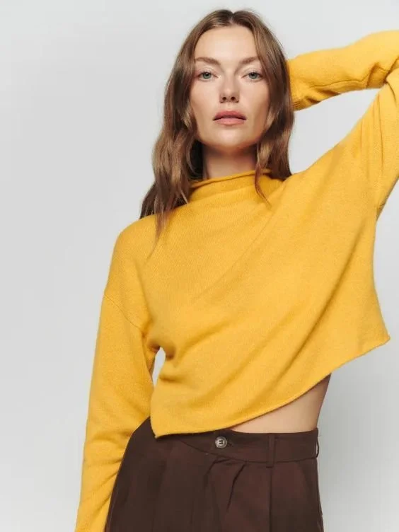 Cropped Cashmere Turtle. Available in multiple colors. Reformation. $168. This is a fine-gauge recycled cashmere blend sweater knit - 90% Recycled Cashmere, 10% Cashmere.