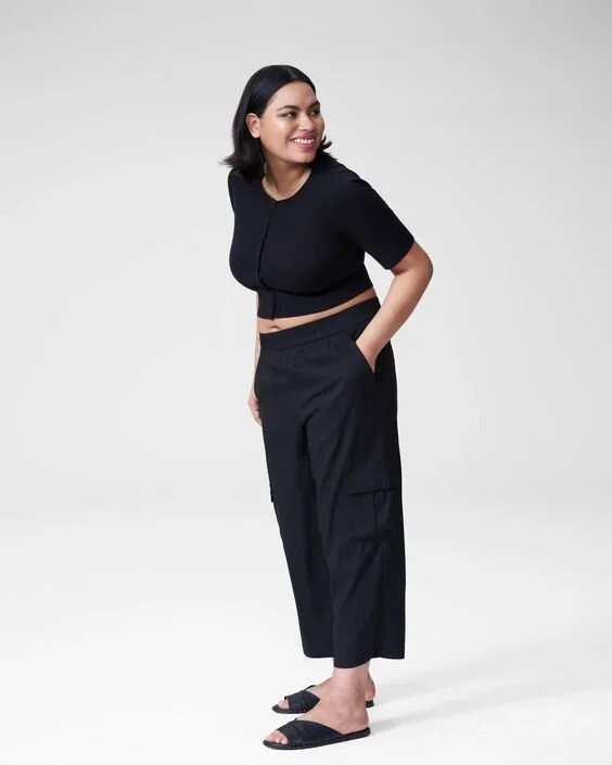 Here’s another flattering pair of pants that gives you more variety in your wardrobe without choosing over the top pieces. The pockets are at the knees, so they are not an issue. You’ll be comfortable and feel hip. Again, this pair of pants can mix and match effortlessly with the tops on this list.