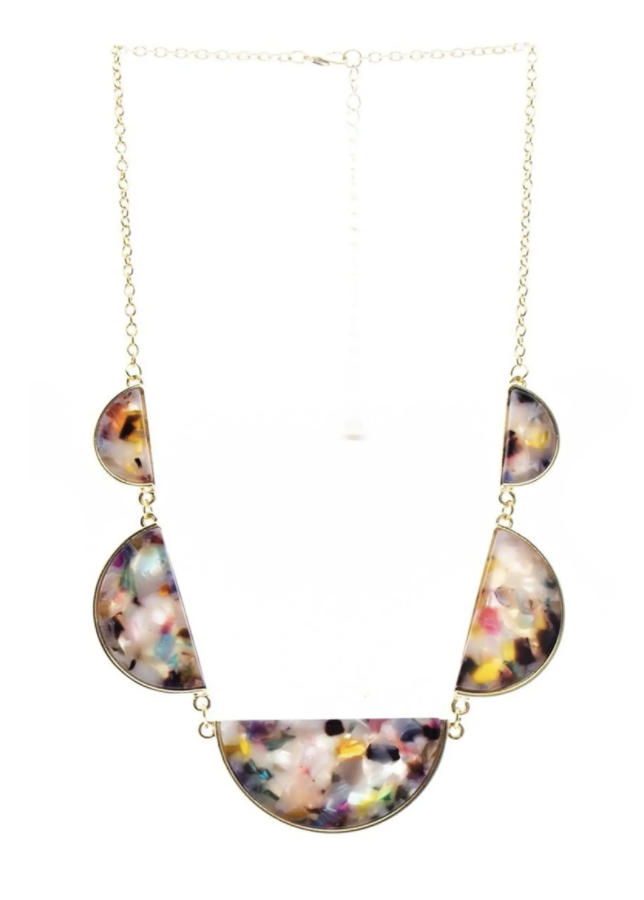 Your multicolored bracelet brings you so much joy and this necklace is sure to elicit all sorts of happiness. It’s a fun way to introduce color that is anything but boring.