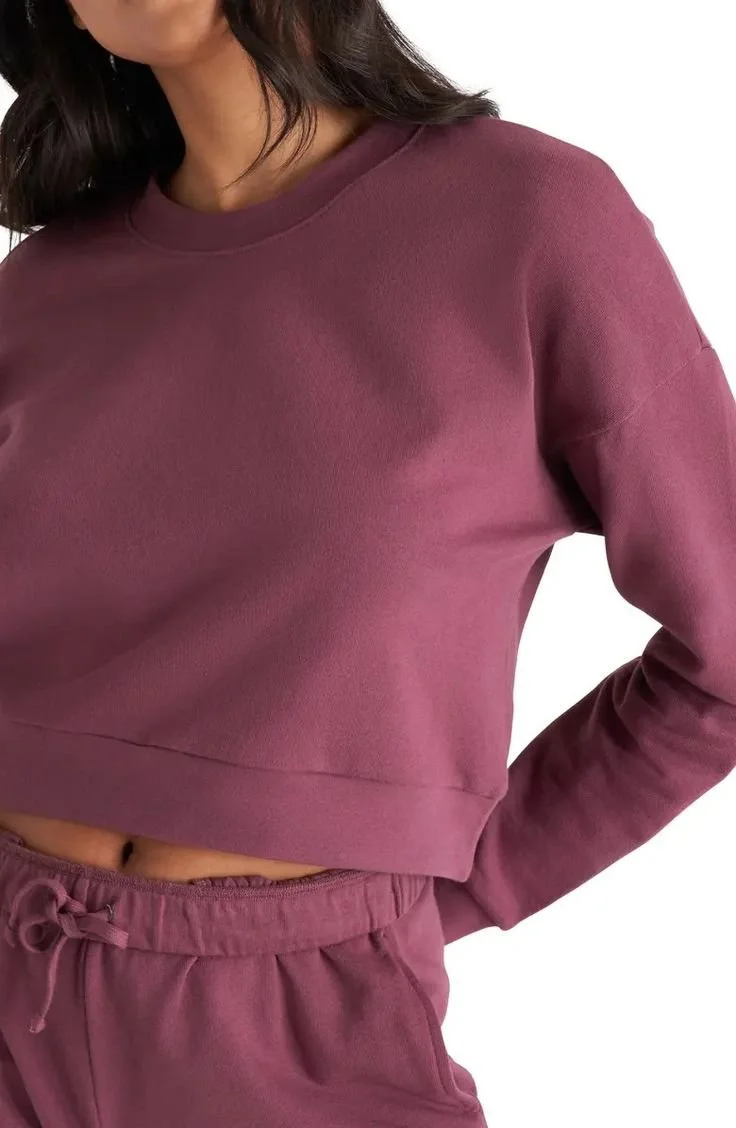 Geneva Sweatshirt. Available in multiple colors. Marcella NYC. Was: $118. Now: $100. Midweight European French Terry (95% Cotton, 5% Lycra). Designed in NYC. Handcrafted in Europe. Our production team enjoys a living wage, a 40-hour work week with paid overtime, free health insurance and 20 days annual paid vacation.