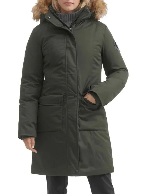 TOBOGGAN CANADASienna III Faux Fur Featherless Hooded Parka. Available in multiple colors listed separately. Saks off 5th. Was: $495. Now: $349. The Holiday Sale: Extra 50% OFF Select Styles With Code HOLIDAY (not sure if this one is included.) 100% polyester. Trim:100% polyester. Fill: Down. Machine wash. Fur type: Faux.