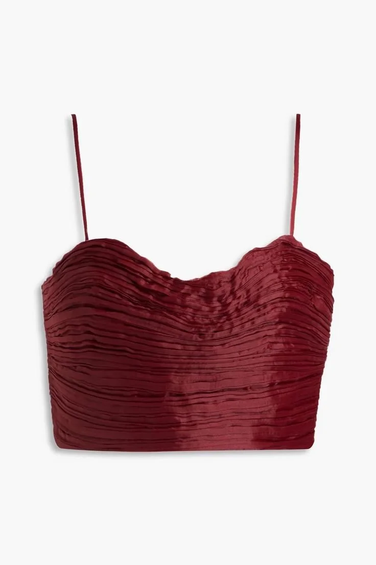 AJE. Laurier Wave cropped plissé-organza top. The Outnet. Was: $295. Now: $104. Organza 100% Polyester.