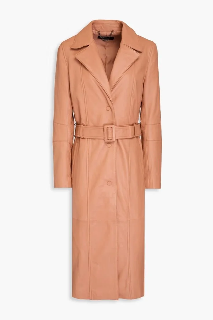 MUUBAA Belted leather coat. The Outnet. Was: $992. Now: $446. Supple, non-stretchy leather. 100% lambskin.