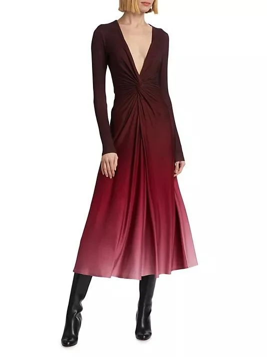 Prabal Gurung Twist-Front Midi-Dress. Saks Fifth Avenue. Was: $1,095 Now: $438. 96% viscose/ 4% elastane. Made in USA.