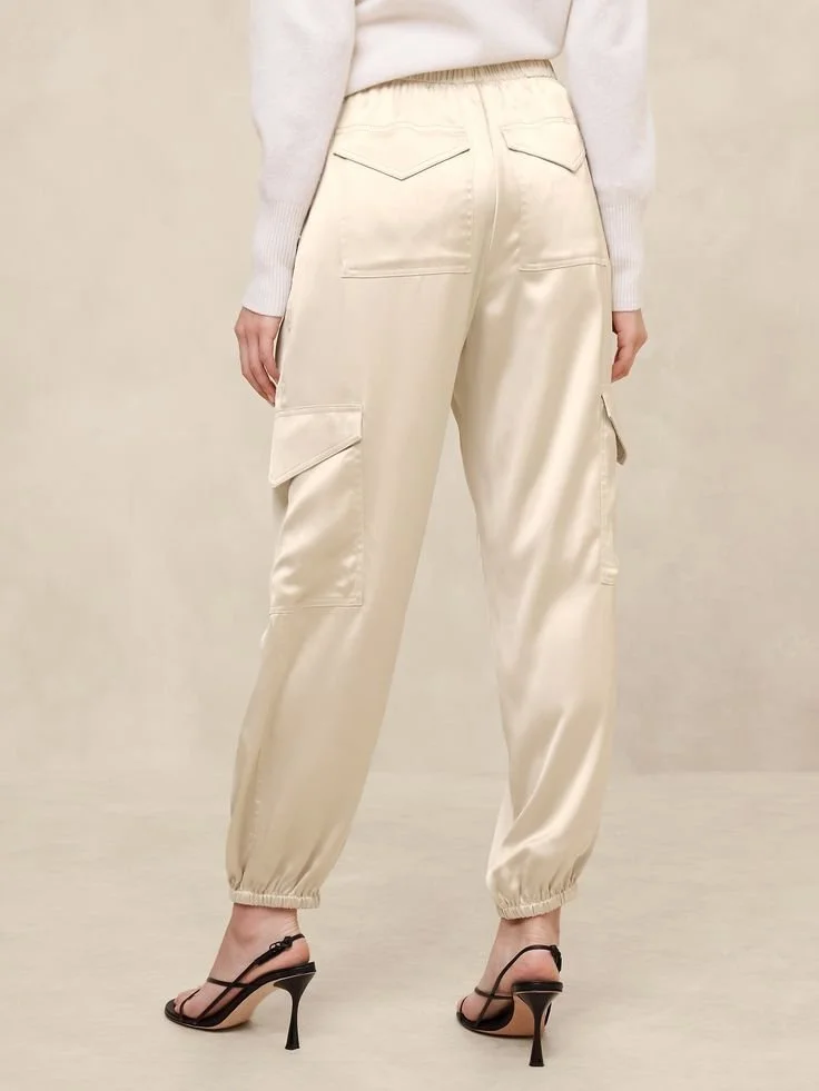 Looking for that ideal “professional” look that’s anything but boring? This is it. Just right for negotiations or dressier situations, this vegan leather cropped blazer paired with a high waist pant is sure to bring success. Bodysuits are a win for you and this sexy and still functional option is just right. It will also show some of your back tattoo. There’s no need to finish this off with jeans. Show your style mastery with a wide leg pant from Aritzia (comfortable and effortless) or a satin jogger (elegant and cozy enough for nap time).