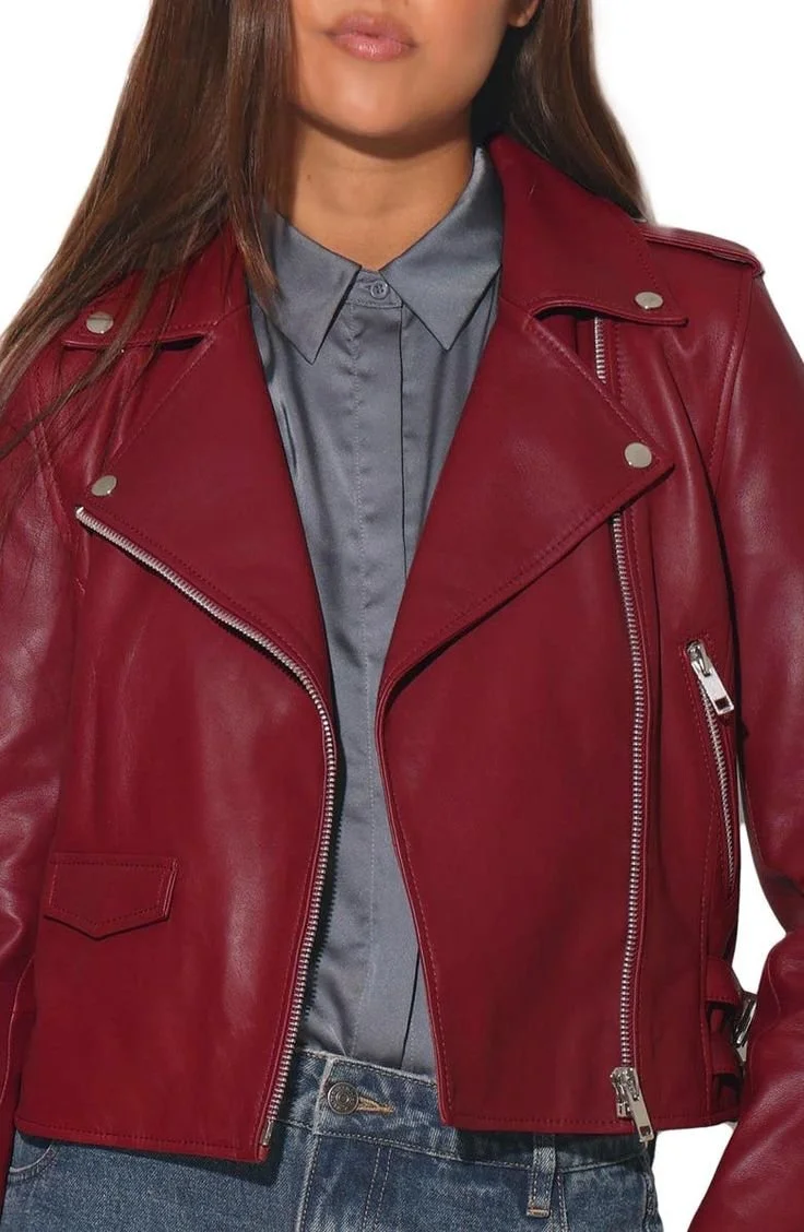 You’ll see an array of leather and vegan leather pieces on this list. This texture is an essential component of your new look. Add a piece of leather here and there or opt for an entire leather outfit. You can do it! And, this approach aligns with your style goals. This vegan leather jacket from Elodie is my FAVORITE. It’s insanely inexpensive and is a great option for rain. It’s not precious and works with a wide variety of styles. It’s great with expressive shoes.