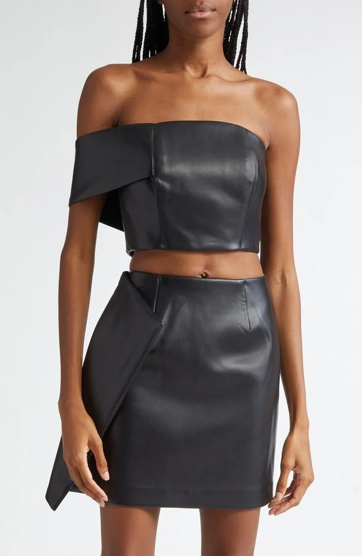 ISRAELLA KOBLA Kamaal Faux Leather Bustier Top. Nordstrom Rack. Was: $300. Now: $61. 100% polyurethane.. Made in Canada. Black Owned/Founded.
